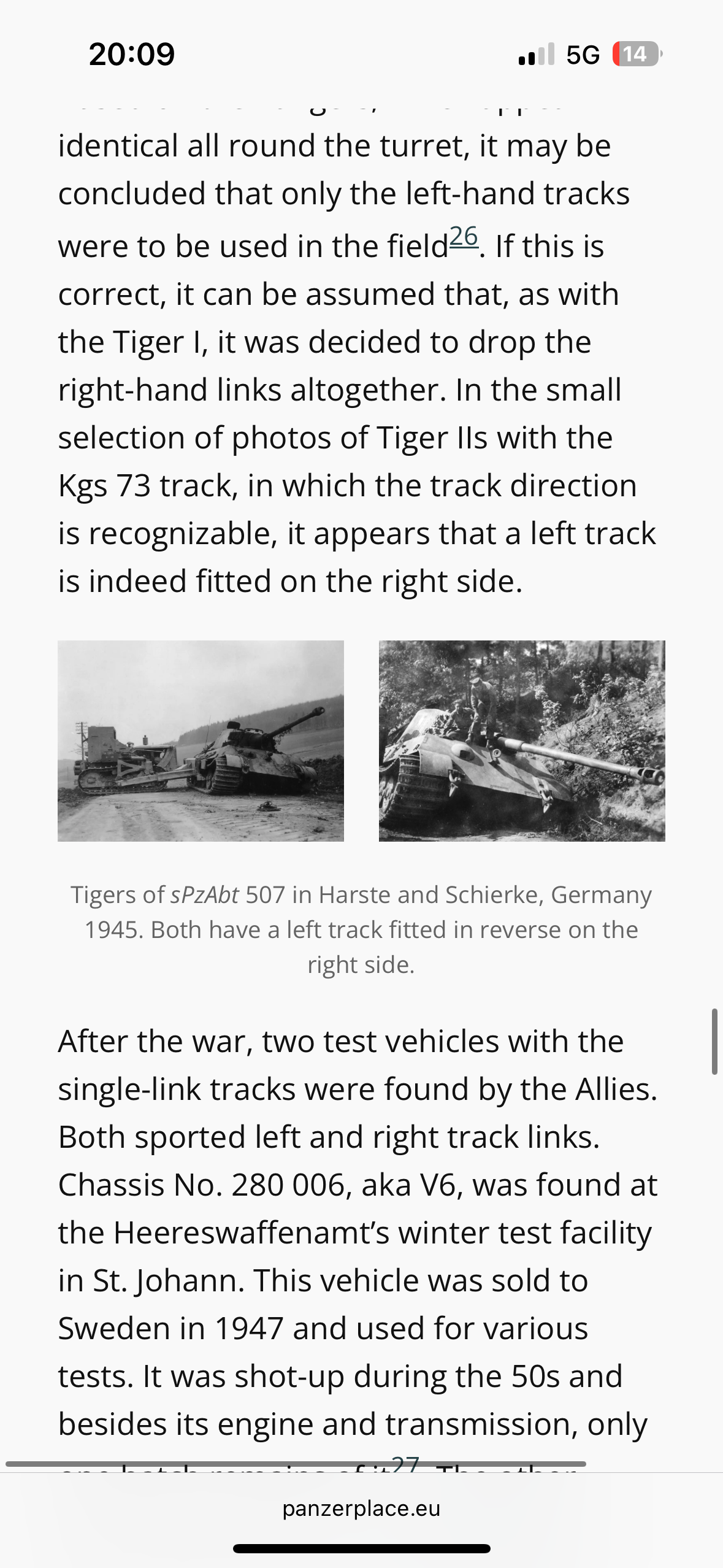 Для того чтобы, они были надеты на одну сторону, нужны зеркальные траки в 506 ттб было, так что давали не зеркальные а только на одну сторону, данный момент и факт часто опускают, но да на таких танках могло быть траки не зеркального типа, то есть обе ленты по факту предназначены на одну сторону и не одеваются зеркально, я нашел очень мало фото танков именно с зеркальными траками. В качестве пруфа фотографии.