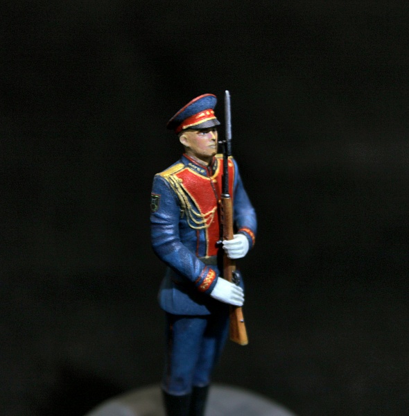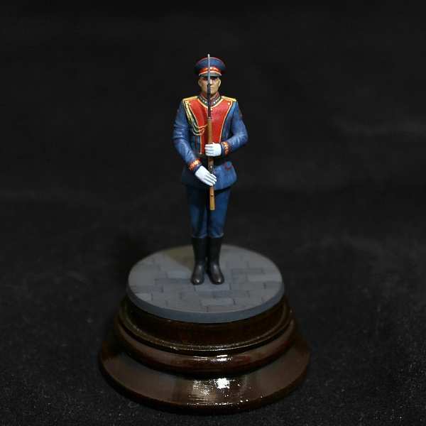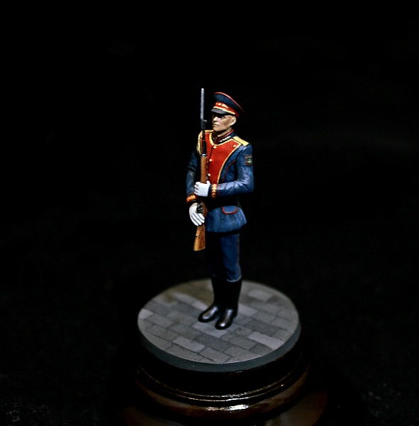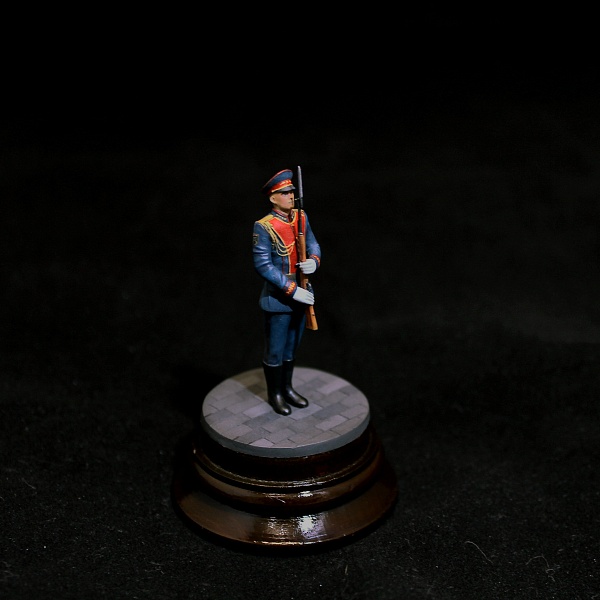 Простенькая фигура из набора Звезды.Стыкуемость отличная. Хотя литье несколько замыленное. В целом хорошая миниатюра, позволяющая отвлечься от "вечно зеленых" тем. Роспись: акрил vallejo, pacific88. Лак jim scale. Декали: немного доработанные от kru models.