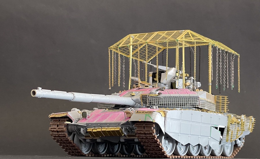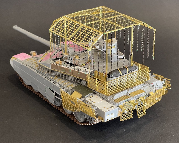 Фототравления от микродизайн для Т-90М для Tiger Model, противокумулятивные решетки от микродизайн, мангал ноунейм из поднебесной, контакт от микродизайн, цепочки, трос и прочее оборудование и мелочевка на броне различный афтемаркет ну конечно пластик от дошика.