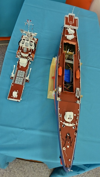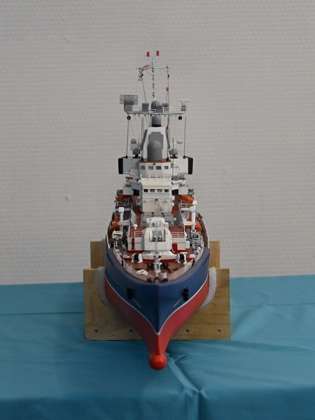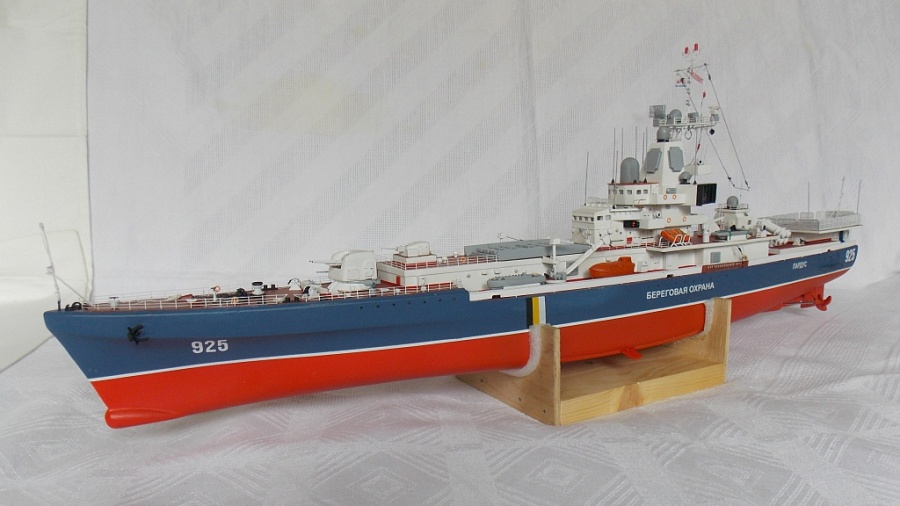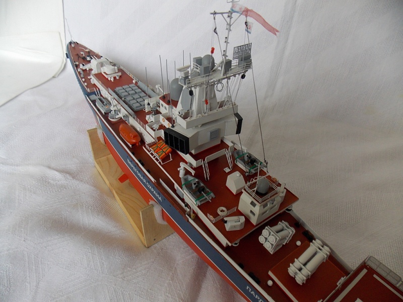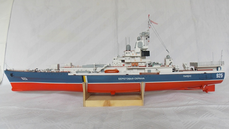 Добрый день Предлагаем на Ваш суд модель корабля РИФ «Пардус»Модель появилась на свет спонтанно. В 2024 году в Новосибирск на последний старт моего учителя и старшего товарища приехал кемеровчанин Владимир Голубович. Повидаться, они хорошие друзья. Голубович известный моделист, член сборной, чемпион мира и прочая и прочая. Как у каждого моделиста со стажем у него много чего накопилось и он предложил всё это нам. При этом присутствовал новосибирец Алексей Курбатов. Он хорошо работает с молодёжью, но молодёжь она и есть молодёжь. Поэтому на одну модель идёт полтора набора. И он предложил в довесок кучу пластиковых корпусов с остатками мелочи. Вроде нам это и ни к чему ,но отказываться грех. И целый рюкзак корпусов привезли на Кубок Покрышкина,но уже в этом году.. Что с ними делать? Выбрали корпус Тирпиц-Бисмарк. Чьё производство не знаем. Решили сделать модель для показательных покатушек чтобы ничем не заморачиваться. Группа товарищей принялась за работу в июне и закончила к началу учебного года в допобразовании 14 сентября Итак - корпус ЛК. Обрезана и увеличена в объёме корма Ну и сам корпус изменился чуть- чуть Выставлена механика и от неё уже плясались проёмы палубы и архитектура. При этом установлено, что корпус ужасающе кривой. Для настольных моделей пойдёт ,но руками было бы точней. . В работе использовался цианкрилат , ПХВ пластик, двухкомпонентная шпаклёвка , двухкомпонентный акриловый грунт, автомобильные краски ,матовый лак Кудо и эмалит . Иллюминаторы из трубки. Их остекление -жидкое стекло. Ноу-Хау клуба "Пластмастер" Федотова Олега. Декали -Абатских Алексей. Номера -плоттерная резка. Всё решетчатое и ограждение вертолётной палубы-Михеев Александр. Большое ему спасибо! Качество отменное. Травление-Микродизайн. 3D печать -ДолженкОв Олег. Двигатели фирмы Mabuchi motor на шесть вольт.,6000 об/мин. Радиоаппаратура FLYSKY FS-i4. регулятор хода производства ребят из г. Кролёв. После механики и придания корпусу нужного вида зная коварность пластика ,покрыли корпус жидким эмалитом самодельным, конечно же, распылителем. Затем - акриловый грунт. Шкурение с водой. Потом покраска тем же распылителем. Потом лак Кудо. Декали , номера и снова лак. Всё очень бюджетно как видите. Стенд нас не волновал. Главное чтобы всё было крепким. В разных руках же он будет. Да и в разделе ДЕЙСТВУЮЩИЕ это дело десятое как мы понимаем. Единственно старались чтобы это было похоже на корабль. Но на показательных выступлениях на День ВМФ все моряки признавали его за своего. Некоторые даже служили на почти таком. Выпимши были С уважением