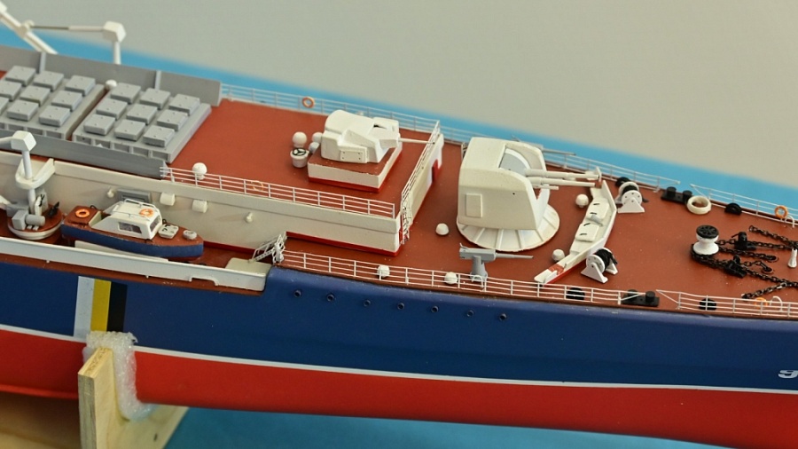 Очень хорошая работа, коллега. Поздравляю! Силуэт модели, имеет сходство с кораблями пр. 1123, только корма чуть короче...
