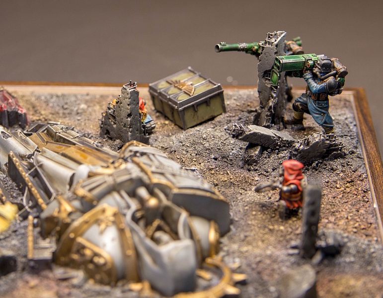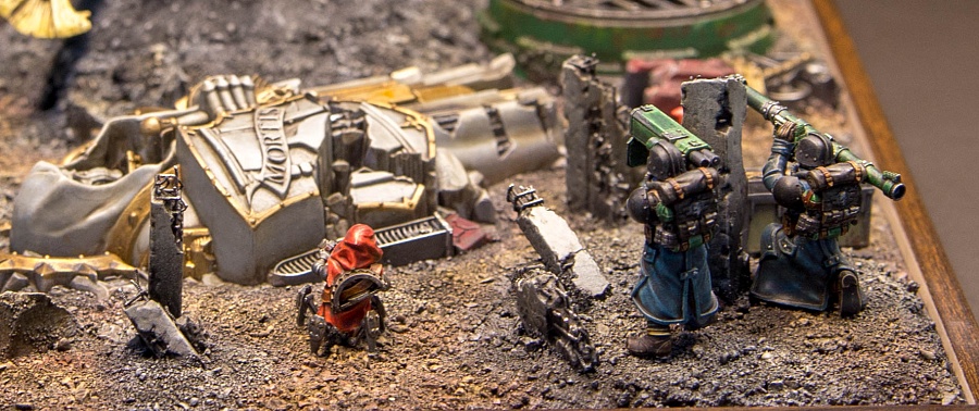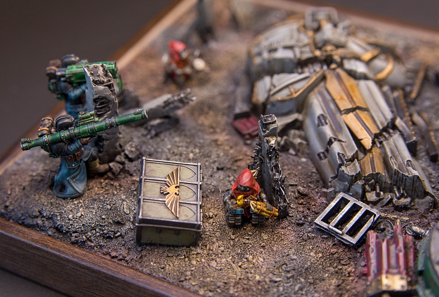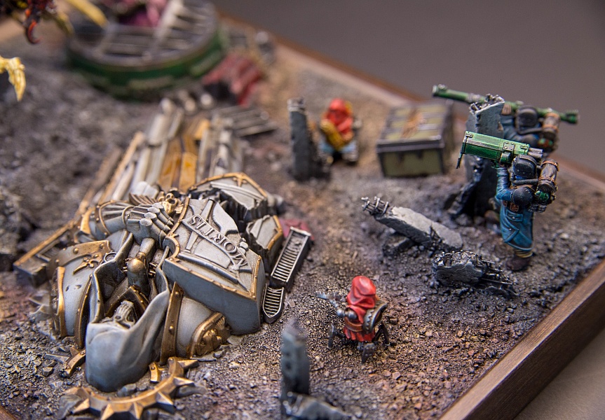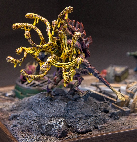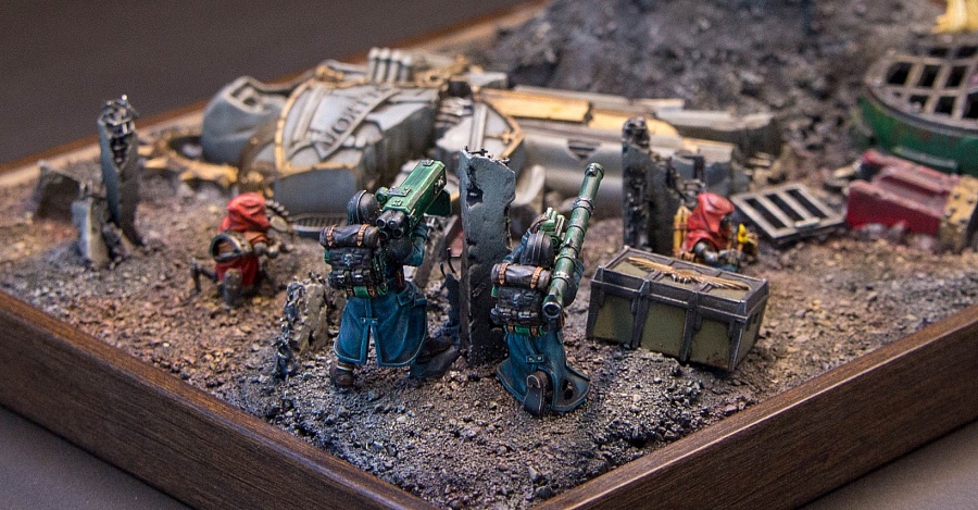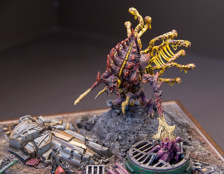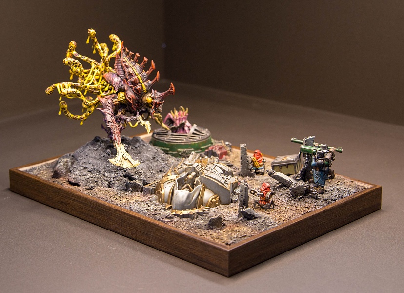 Пупа и Лупа опять в гуще событий. Шутка ли! Вторжение космических тараканов! С главным тараканом пришлось повозится со щупальцами. Перекрашивал 4 раза. Персонажи и антураж - 3D печать и фрагменты террейна для вахи. Подставка 24х17 Краски как обычно масло, Citadel, Paciffic, контрасты Speed paint.