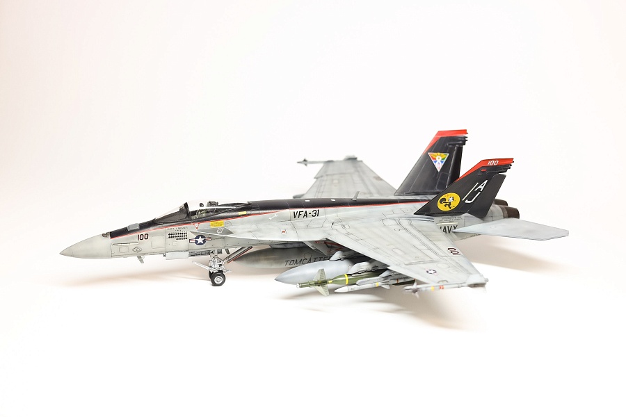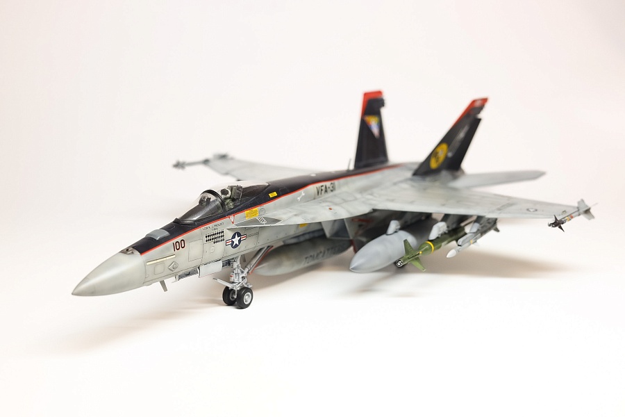 | Модель F-18 meng, первый раз пытаюсь тут выложить. В мат часть не углублялся, вся химия Tamiya и mr Hobby. | |