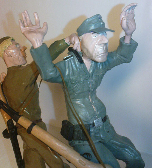 К сожалению в масштабе 1:16 сделать мне это было не под силу, посему фигурки выросли аж до 135 мм (по уровню глаз), за то увеличилась детализация! На ППШ-41 и германском "КАРе" вполне отчетливо получились мушки, прицельные планки, курок и прочая мелочевка.