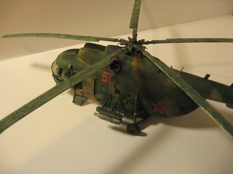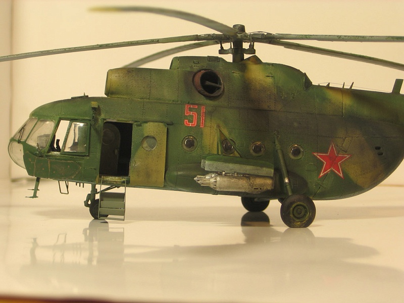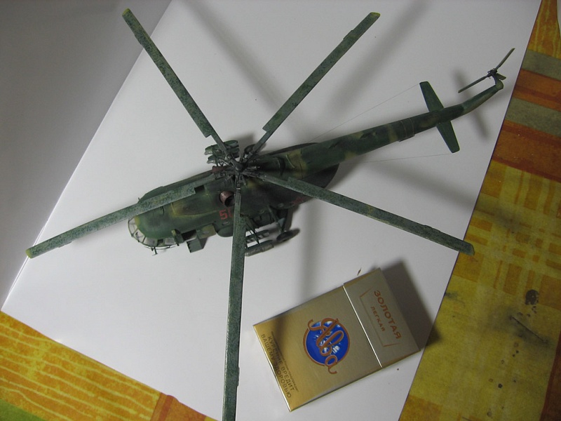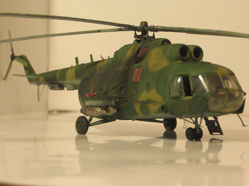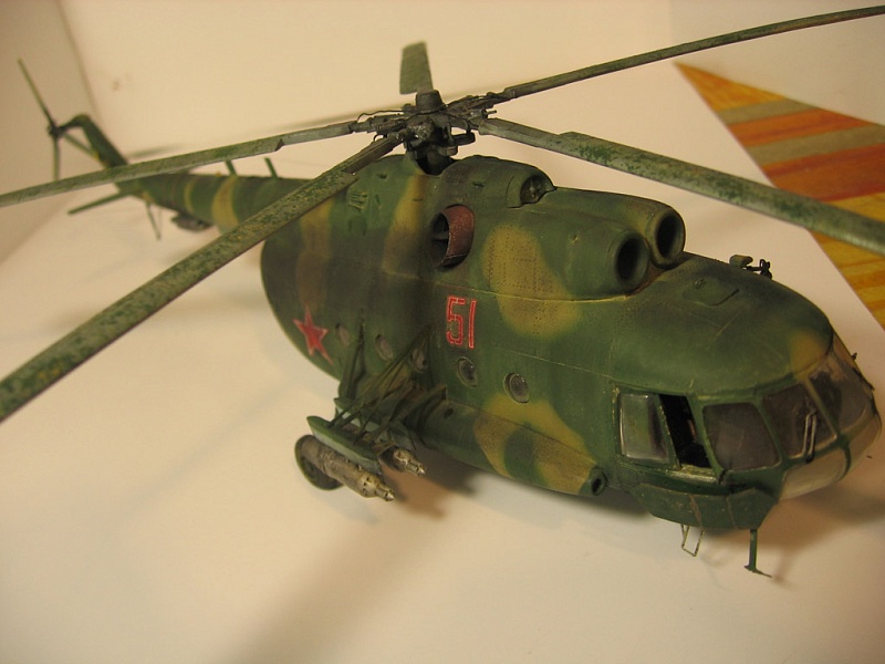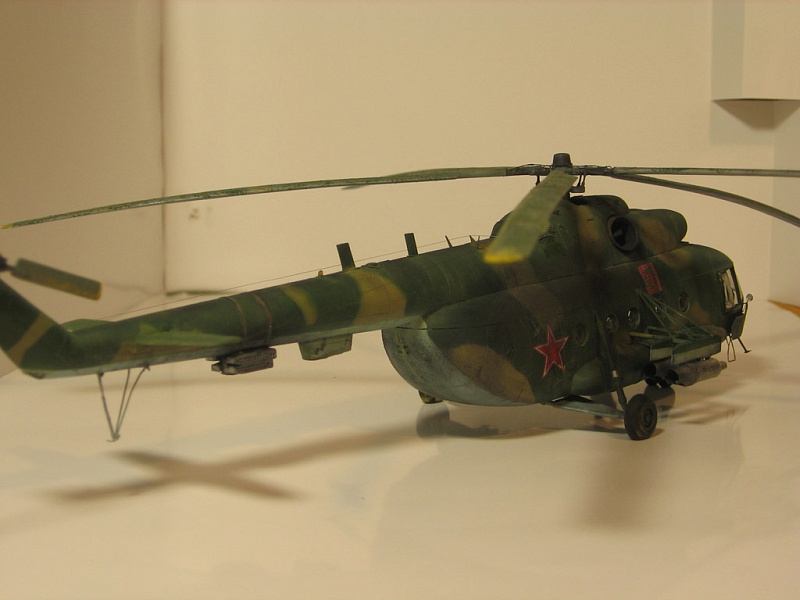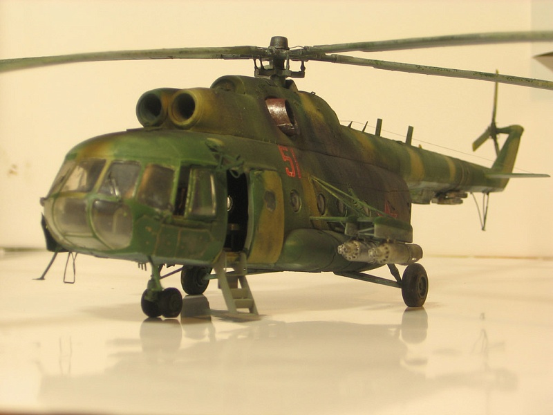 Приветствую,уважаемые моделисты, решил попробовать себя в авиации ,а тут случай подвернулся, друг помог- некогда ему было собирать вертушку вот он и отдал мне , подошёл я к этому делу с лёгким сердцем прикупил травы от Эдуарда и понеслось….. Звездец полный,в некотором роде кулер получился модернизированный что то между ми -8 и ми -17 ,собирал как модель копийности не придерживался ,строил ,красил в угоду смотрибельности,по мат.части- захотевший увидеть косяки найдёт их ,про звездовский переплёт кабины а также литьё по этой модели тома можно писать(шпаклевать пришлось много),теперь понимаю авиаторов как в таком масштабе ,да с такими дровами, тяжело работать, это вам не это. Тему выбрал про Афганистан, там МИ-8 прошёл школу жизни, модернизация этого вертолёта(имеется ввиду армейская модификация) написана кровью. Как получилось судить вам . За качество фото не ругайте ,такой масштаб ещё не научился фотографировать. Приятного просмотра.