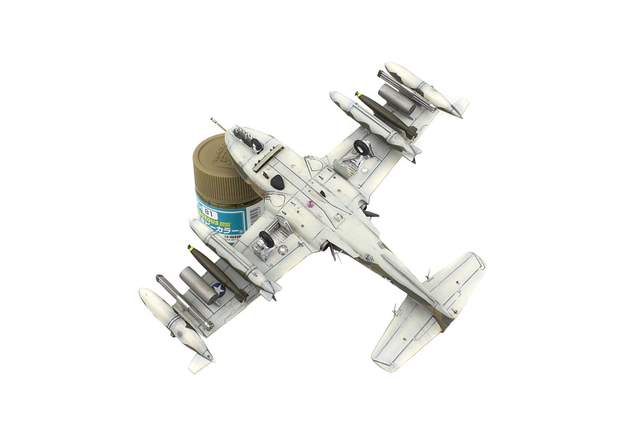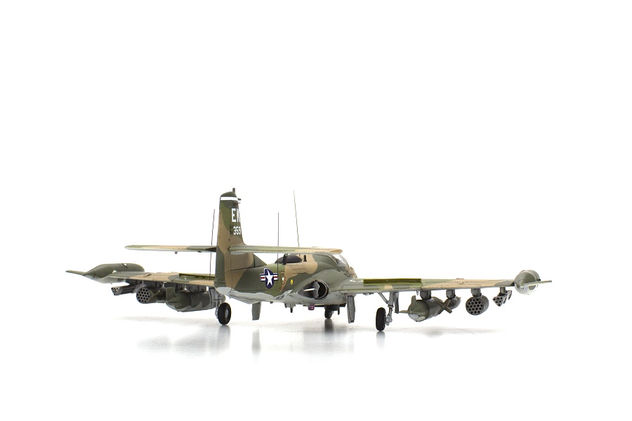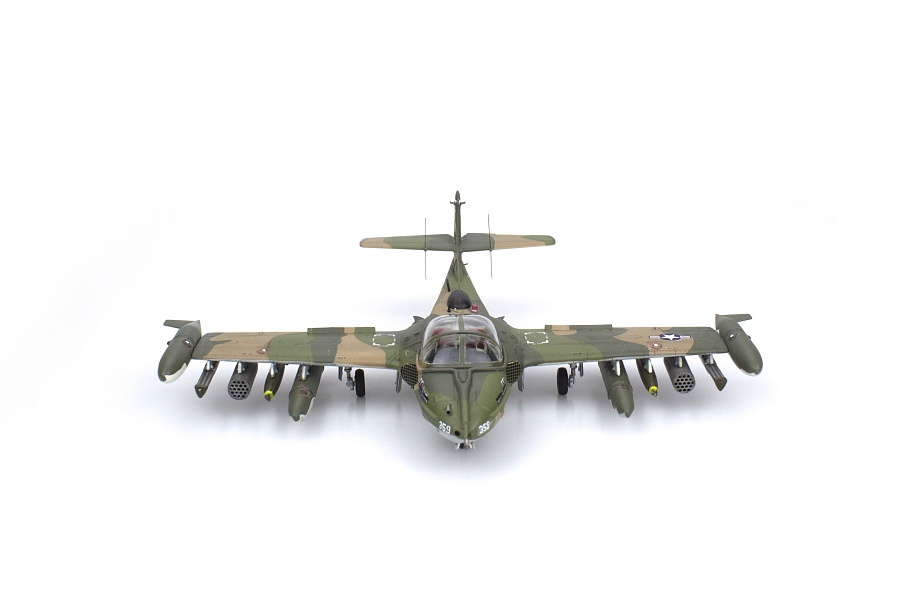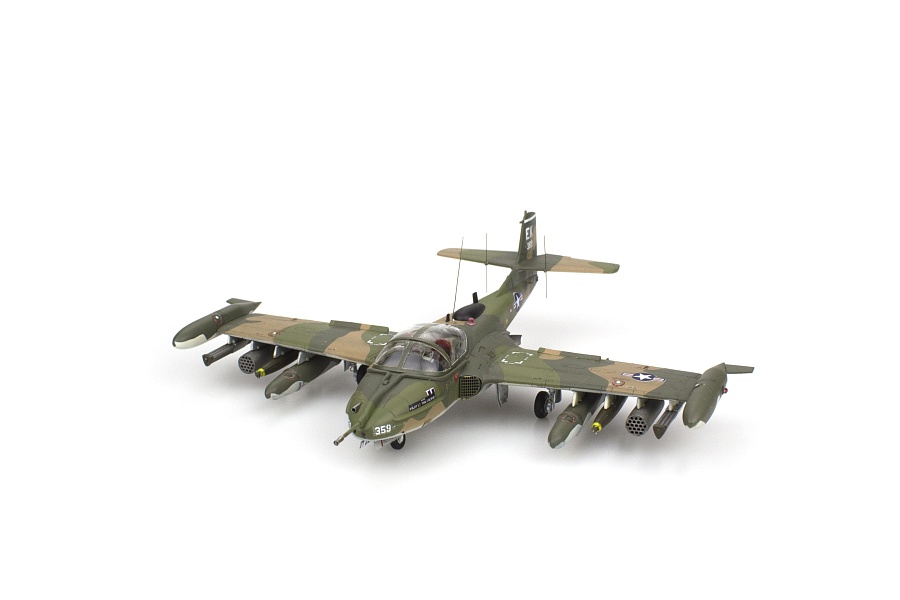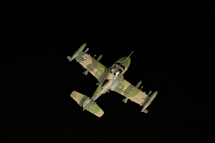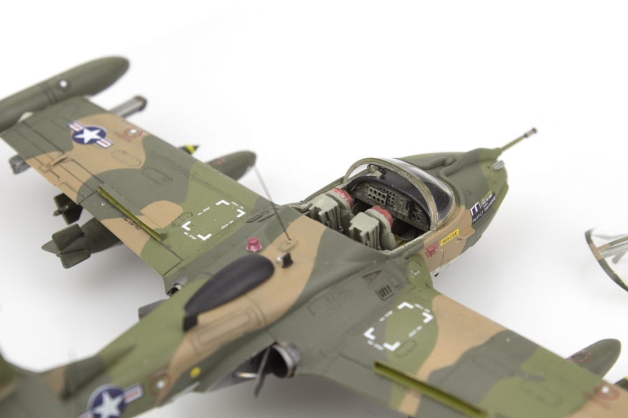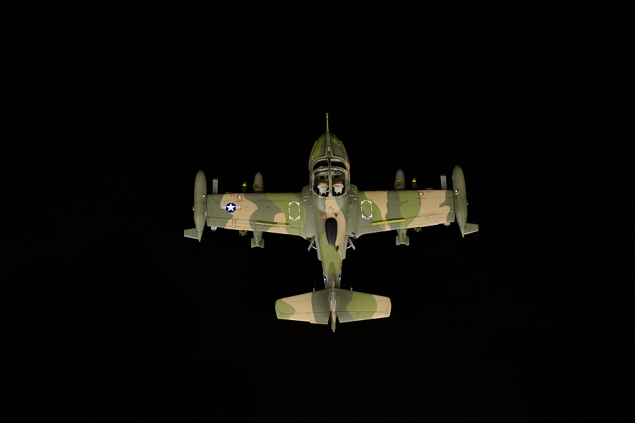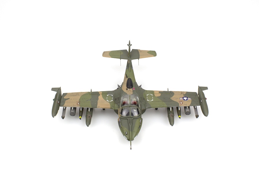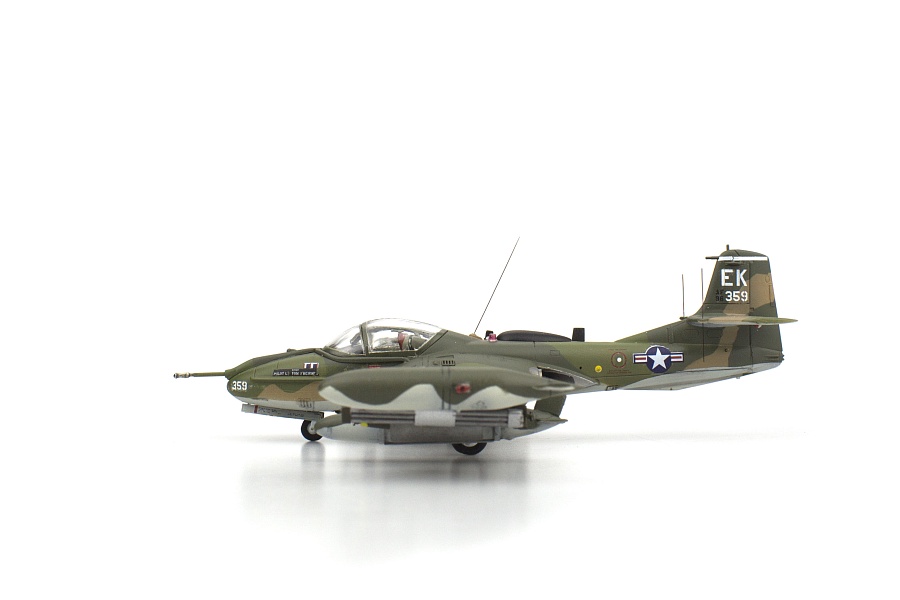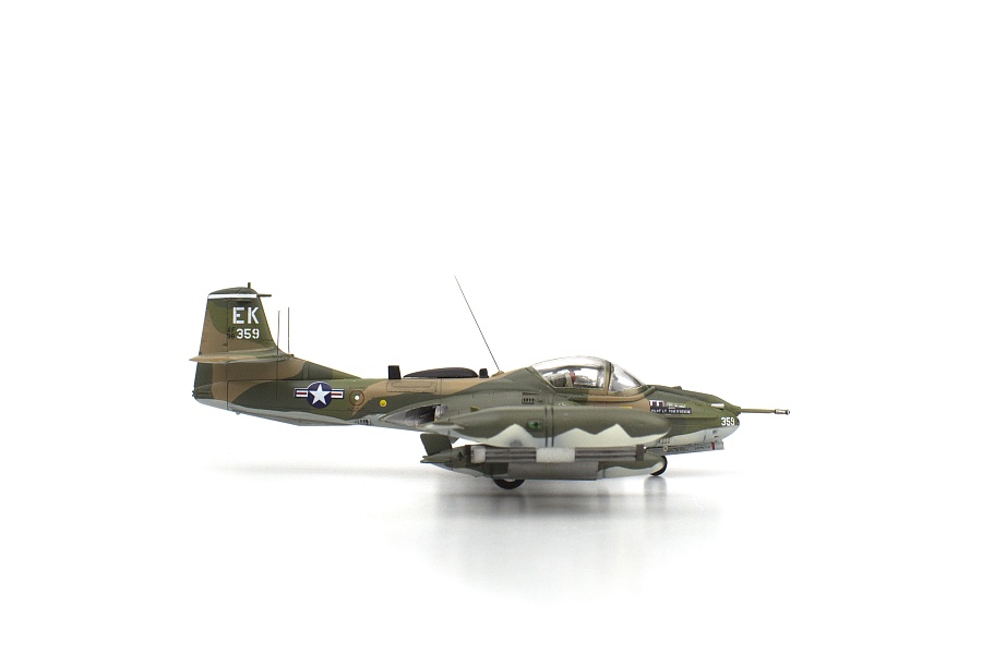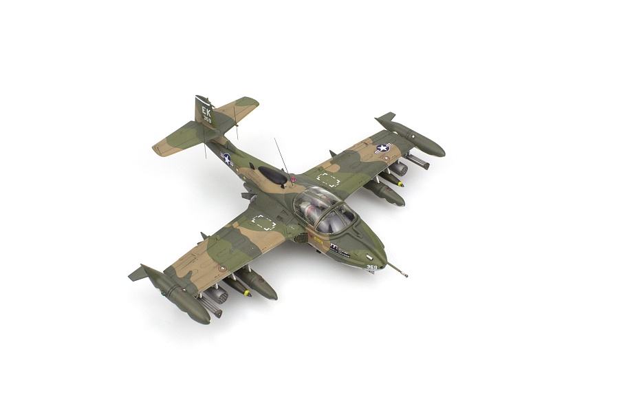 | Приветствую вас, уважаемые коллеги! После долгого перерыва в работе с пластиковыми моделями, связанного с постройкой галеона от DeAGOSTINI, решил вернуться к привычному для себя делу. Для этого выбрал из запасов несложную, на мой взгляд, модель от Academy в 72 масштабе - A-37B Dragonfly. Пластик старый, но аккуратный с внутренней расшивкой и какой-никакой детализацией. Насчет копийности, конечно, есть вопросы, хотя с чертежами не сравнивал. Особо вызвал отторжение набор вооружения и топливные баки, которые по геометрии совсем не то. Однако, целью было плавно вернуться к работе с пластиком, поэтому никаких запилов и конверсий не предполагалось. Набор покупался давно, а вместе с ним и фототравление от Eduard. К этой модели было бы неплохо разжиться и смоляным вооружением, но конский ценник на него в настоящее время и цель постройки расставили приоритеты. Итак по модели. Неплохая стыкуемость, шпатлевки минимум. КВ-антенны - щетинки из малярной кисти. Отделил колесо от передней стойки, было одной деталью. Не во всех местах удалось победить декаль. Набор травления очень даже хорошо вписался, однако детали, призванные имитировать сопла двигателей, ну совсем мимо. А сам заморачиваться тоже не стал. Натупил с хромат йеллоу в нишах интерцепторов. Отдельной проблемой стал слабый прижим купола антенны ADI. Осталась небольшая щель между куполом и фюзеляжем. Я побоялся прижать сильней, потому что клеил ее уже на практически готовую модель, и вышло это только со второго раза. А в первый раз треснул шов по стыку половинок фюзеляжа. Пришлось местно удалять ЛКП, заново шпатлевать и красить. Кабину не стал делать открытой, чтобы не портить силуэт этого воинственного малыша. Однако фонарь держится на micro liquitape от Microscale, поэтому в любой момент его можно снять. Как обычно вместо смывки получилось непонятно что. Надо набивать руку. В целом процесс сборки доставил удовольствие. Борт EK359 8-ой эскадрильи специальных операций 14-го крыла СО, ранее известного как бомбардировочного. Вообще, не смотря на размер, машина довольно грозная. Способность нести разнообразное вооружение в совокупности с его количеством и маневренностью делали этот легкий штурмовик опасной угрозой с неба для вьетнамских наземных сил. В работе использовались акрил от mr.hobby, Футура, смывка, клеи и жидкость для декалей от Tamiya. Спасибо за внимание к модели. |