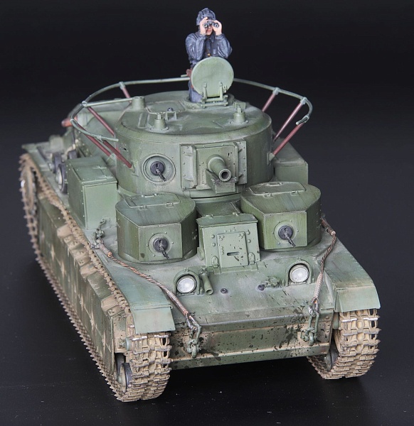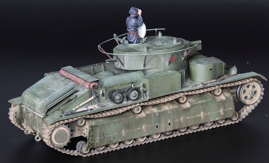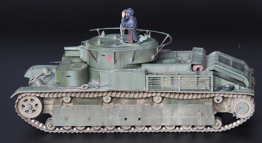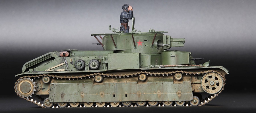 | Всем привет! Увидел в группе Звезды в ВК конкурс. Решил принять в нем участие. Отложил все работы и достал из закромов коробочку с Т-28 и травлением. Докупил траки и ствол. Сразу принял решение паять травление. Посмотрел видео по работе с травлением, все очень доступно и понятно. https://vkvideo.ru/video7760161_162177095?t=1h16m44s Мне понравилось паять, результат на много лучше, чем если клеить детали травления между собой. Такие большие составные детали как надгусеничные полки, решетки МТО и решетка на левом борту стали на порядок крепче. Не все получилось идеально, но я доволен первым опытом. У Микродизайна хорошее травление, но инструкция не самая подробная. Приходилось частенько смотреть на фото настоящего танка и фото на сайте микродизайна (хотя они сами свое травление не полностью собрали). Не дались мне излишне подробные и мелкие детали фиксирующих болтов с барашками на хомуты домкратов и топора, просто приклеил барашки. Дополнения: 1. Травление "Микродизайн" 2. Ствол "Мир моделей" 3. Траки "MasterClub" 4. Стволы пулеметов и клаксон "Zedval" 5. Немного мелочевки из подручных материалов. 6. Брезент из кальки 7. Китайская копия фигурки от Evolution-miniatures Окраска и везиринг: 128 и Tamiya, лак из баллона mr Hobby, Масляные точки (Гамма), фильтр MIG и самодельный из масла Гамма, пигменты (Комплект ЗИП, 128 и мастер пигмент), графит. Всем спасибо! P. S.: в конце добавил фото с исправлениями |