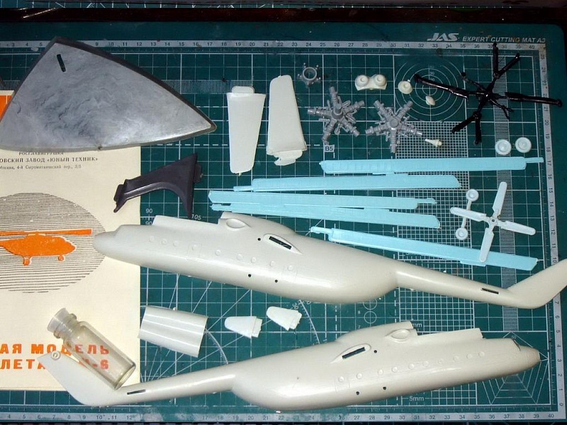 Был такой в детстве, почти в самом начале увлечения моделизмом (первый был МиГ-15, до сих пор почти живой, 44 года как!!! Самая дорогая модель для меня). Тогда я только клеил и сразу на полку, а Ми-6 разукрасил фломастерами, на сколько позволял фломастер красить пластмасс..)) Через лет 5-7 выменял Бе-6 на Ми-6 ГДР, не знал что у немцев масштаб так гуляет и удивлялся какой большой он Ми-6. Подвох раскрыл после приобретения Ту-154, который оказался больше чем Ил-62..))