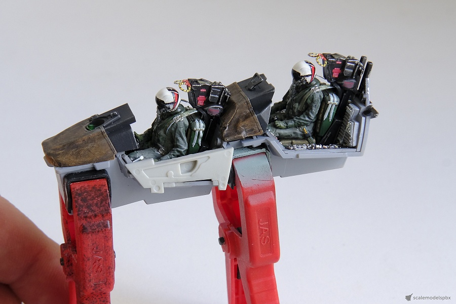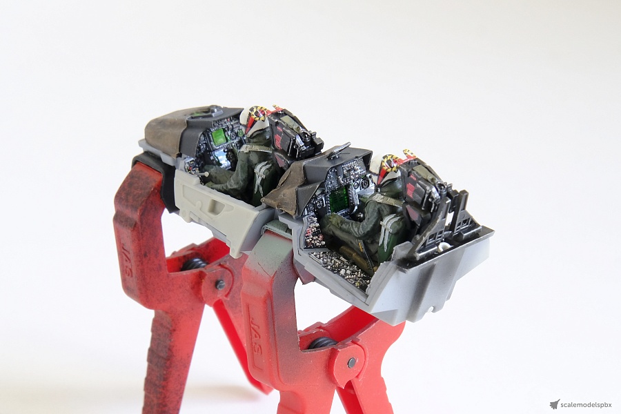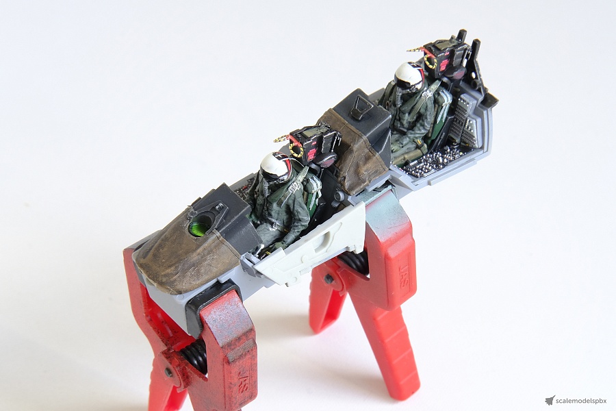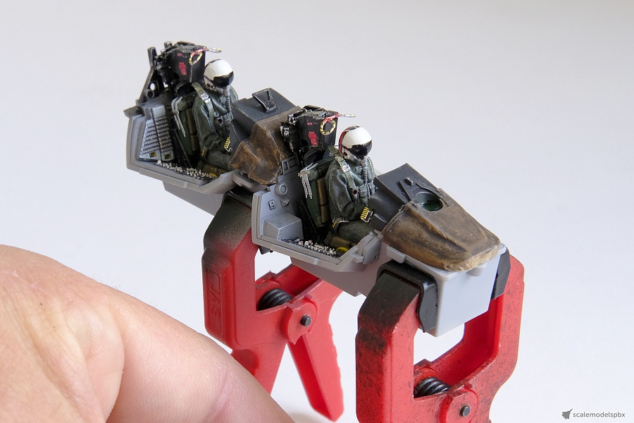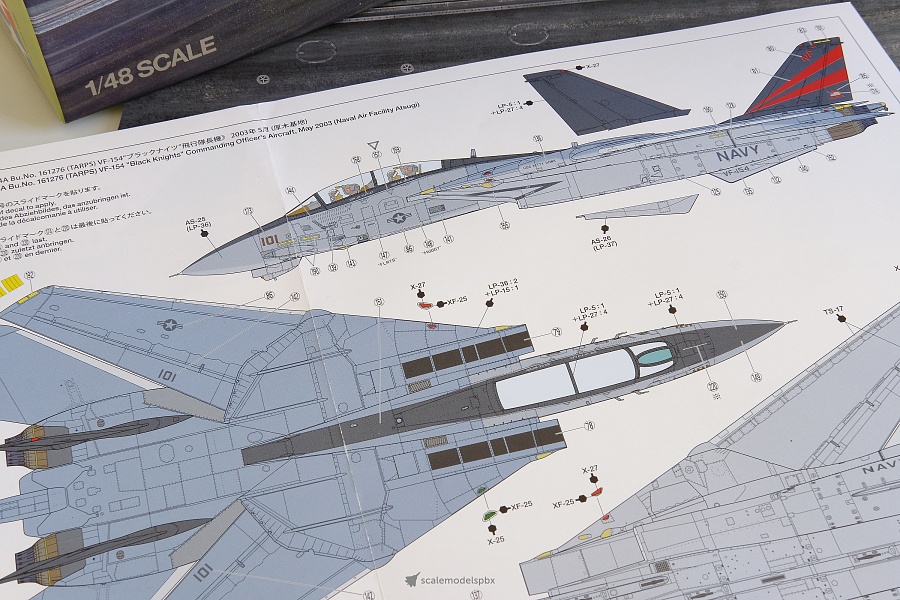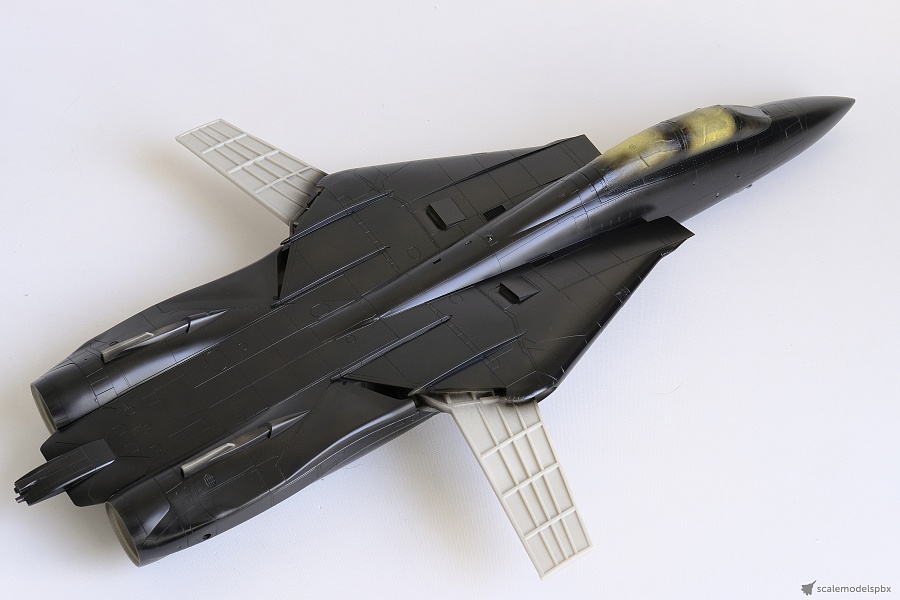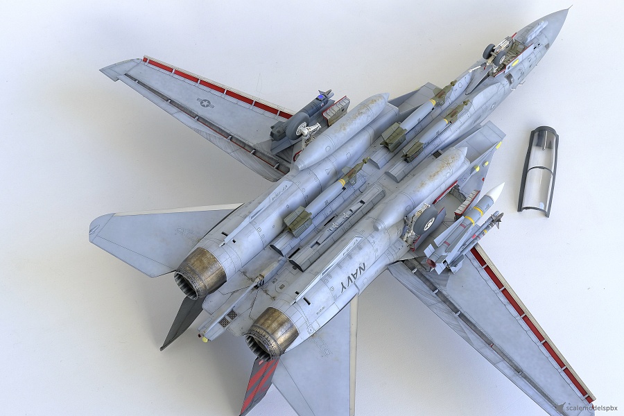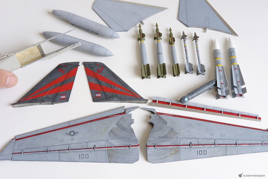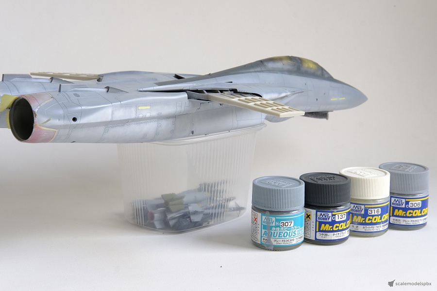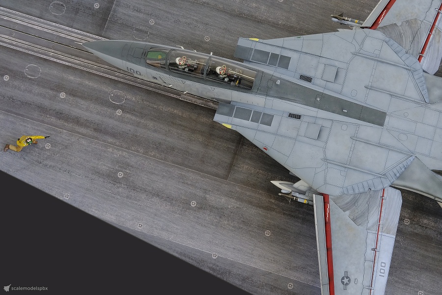Всем привет! Закончилось лето, а вместе с ним и небольшой отпуск. Руки дотянулись до очередной новой коробки. На этот раз это относительная новинка от Tamiya Grumman F-14A Tomcat. В качестве прототипа решил остановиться на машине с поздней современной окраской в холодных, серо-голубых тонах из состава VF-154 Черных рыцарей. Этот вариант Tamiya представила в режиме старта с фигурками пилотов и тех. персонала. Довольно долго возился с кабиной. Показалось, что более насыщена деталями, чем у остальных машин. В наборе использовал декали от Quinta Studio. Тут пришлось совмещать оба набора, поскольку Quinta дает в комплекте выключенные мониторы. Включил их при помощи штатных от Тамии. Не большой специалист в росписи фигурок, а точнее вообще профан, сделал как сумел. Стыкуется и собирается как всегда предсказуемо и хорошо. Самолет насыщен деталями, которые требуют времени на проработку. Раскрытое крыло с раздельной окраской делал почти неделю. Хорошо, что все это оперенье можно красить отдельно от основного корпуса, стыковка частей на сухую просто идеальна. Тамия, что тут скажешь. Сама модель большого размера, частями красить удобно. Сделал вооружение на машину с 100 номером, Тамия в таком окрасе предлагает делать самолет разведчик 101, но захотелось более пестрого арсенала с ассиметричным подвесом гостинцев. Закончил работать со стойками шасси и створками, покрасил, добавил смывку и тонировку, где возможно провел гидравлику. Буквально за несколько часов собрал весь корпус, ни одной щели и перепада высот, ну может в нескольких местах прошел шлифовальной губкой в 1500 единиц. Превосходно продумано членение, сделано так, что даже не приходится возиться с восстановлением расшивки. Похоже, что при любых новинках от Тамии вопрос покупки становится очевидным. Задул черным и начал наносить мраморную крошку. На картинки, которые предлагает Тамия я ориентировался справочно, больше смотрел фотографии этих машин. Окраска у поздних котов судя по всему была по современным стандартам США и эти цвета я покупал для ранее собранного F-16. В работе использовал краски от GSI, 306, 307, 137, 316. Но все эти оттенки пришлось мешать из набора банок. Верх - серо-голубой, это готовая 307, низ мне показался почти белым, очень светлый, пришлось мешать из белой 316, и серой 306 (где-то 50/50), темно-серый это тоже микс 137 (серая резина) вместе с 316. Тамия еще предлагает промежуточный цвет, между низом и верхом, но судя по фотографиям он настолько незаметен, что я не делал сильного контраста между этими частями. Нанес лак, декали и сделал смывку по швам. Декали предсказуемо капризничали, но в целом получилось нормально. Добавил немного следов эксплуатации при помощи масла и смывок, без фанатизма. По финалу стройки могу сказать, что это очередная замечательная модель от Тамии, горячо рекомендую к покупке, несмотря на значительный ценник своих денег эта коробка стоит. Приятного просмотра!