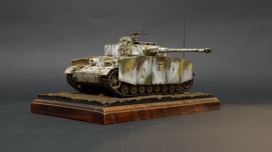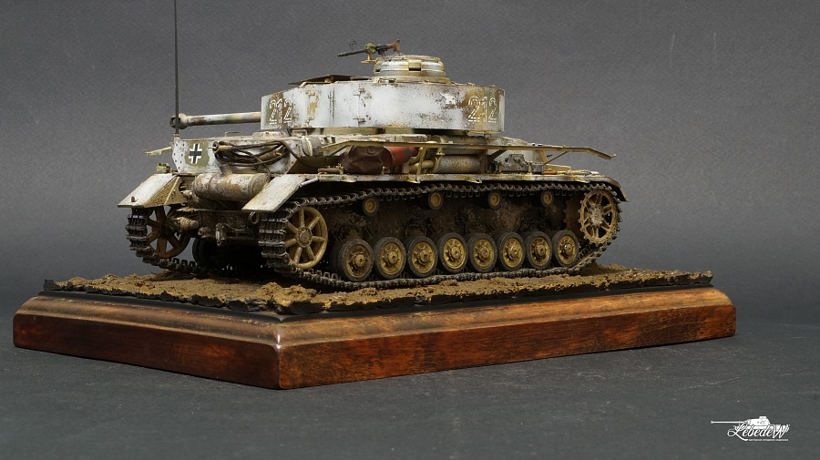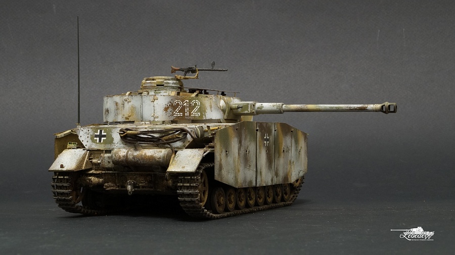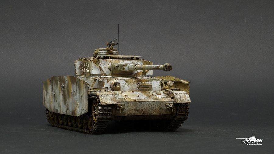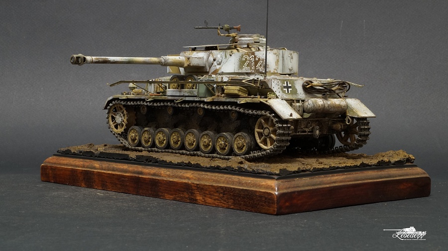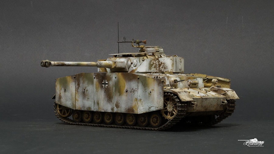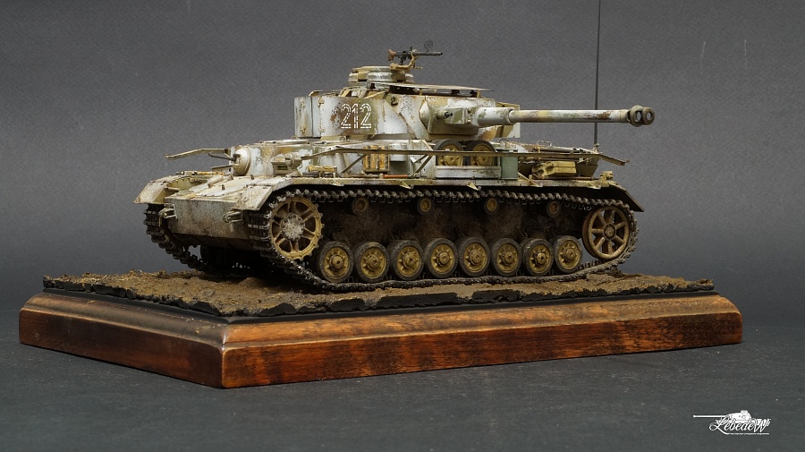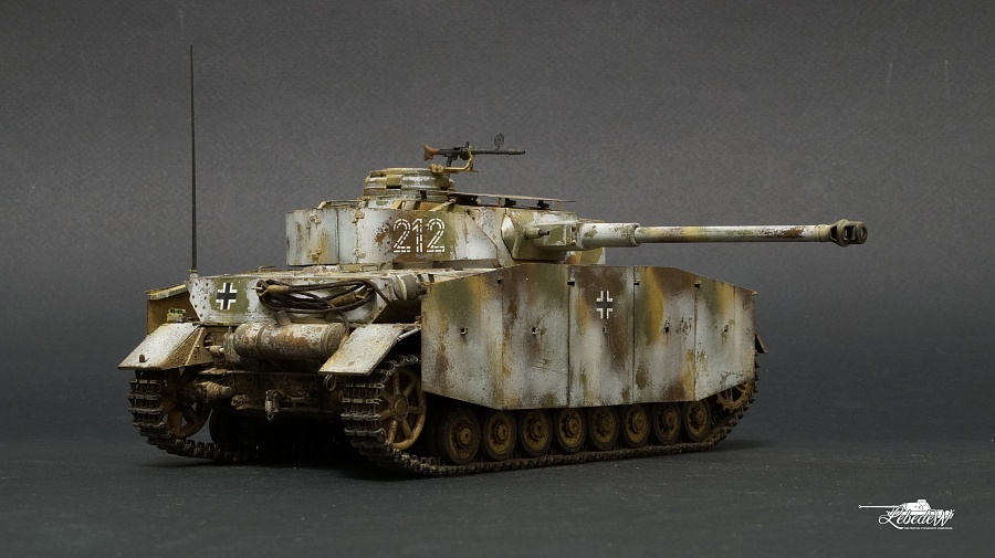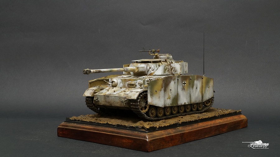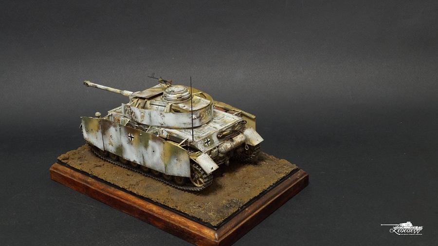 Всем большой привет из Питера! Представляю модель танка PzKpfw IV Ausf.H или в простонародии Т4. Первые опытные образцы машины были созданы в 1936 году, а серийное производство продолжалось в период 1938-1945 годов, завершившись выпуском около 8600 машин.Это самая массовая модификация немецкого среднего танка Pz. IV времён Второй мировой войны. Для этой версии характерно усиленное бронирование, включая 80-мм лобовую броню и бортовые экраны, а также установка зенитного пулемёта на командирскую башенку. Танк в зимнем камо, так как скоро зима)