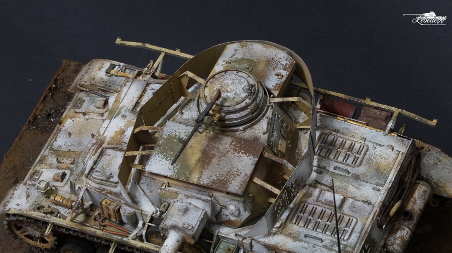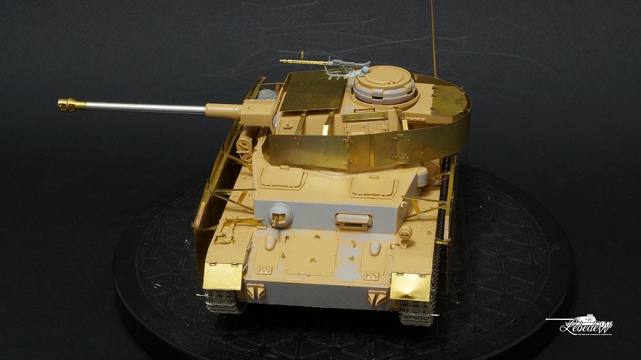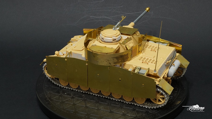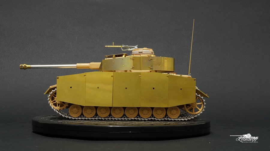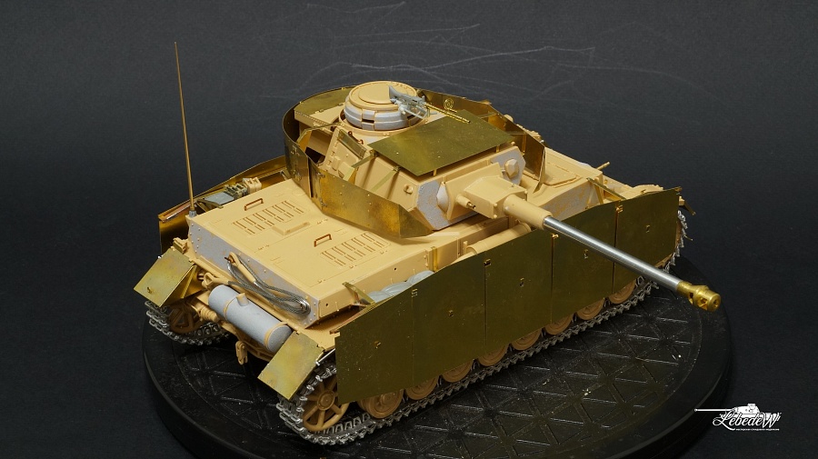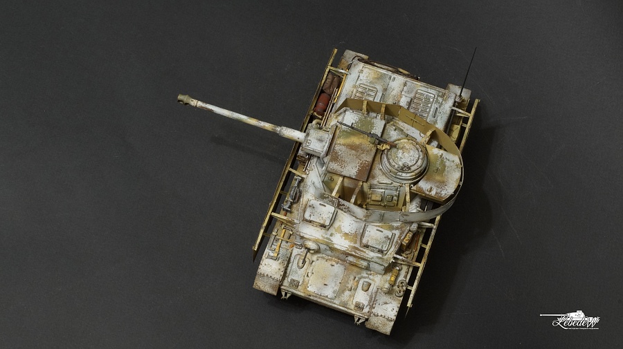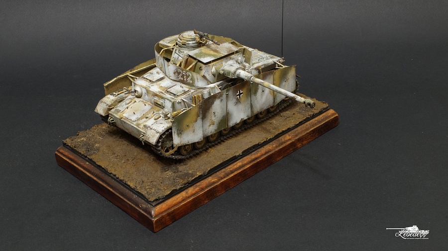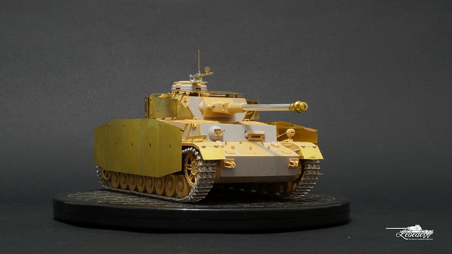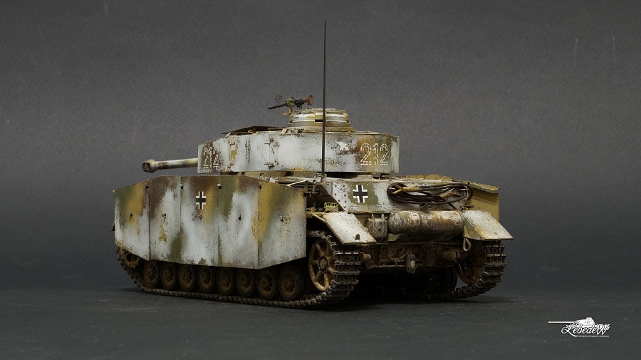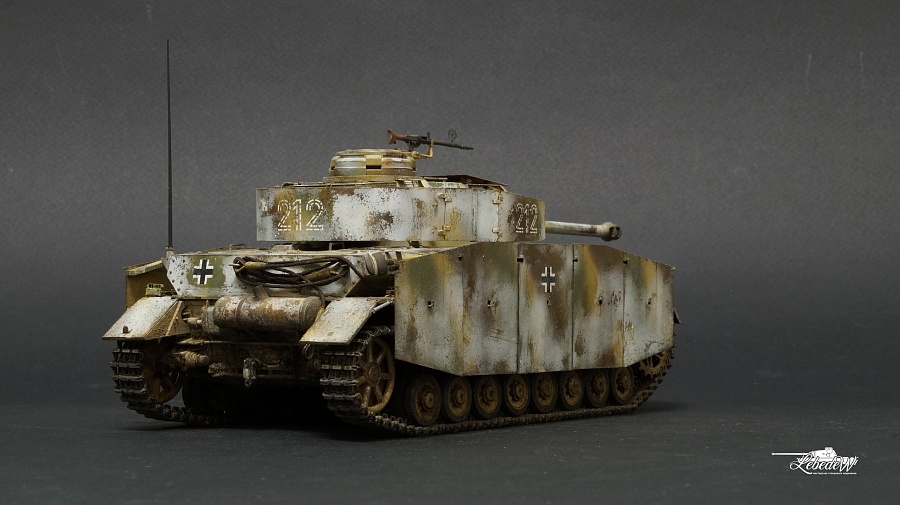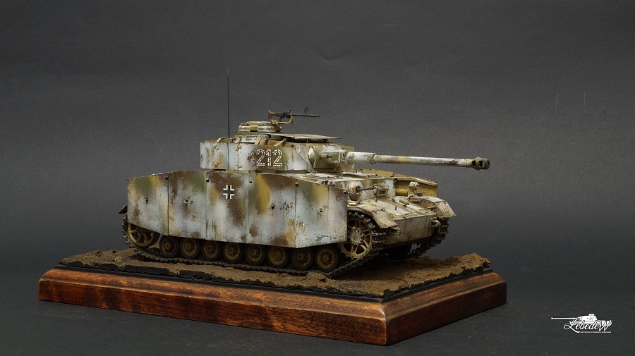 Всем большой привет из Питера! Представляю модель танка PzKpfw IV Ausf.H или в простонародии Т4. Первые опытные образцы машины были созданы в 1936 году, а серийное производство продолжалось в период 1938-1945 годов, завершившись выпуском около 8600 машин.Это самая массовая модификация немецкого среднего танка Pz. IV времён Второй мировой войны. Для этой версии характерно усиленное бронирование, включая 80-мм лобовую броню и бортовые экраны, а также установка зенитного пулемёта на командирскую башенку. Танк в зимнем камо, так как скоро зима)