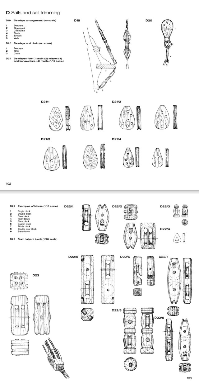и отдельный сет , что думаю тоже был бы весьма вероятен на галеоне 16 века, это копии блоков с Мэри Роуз... даже её юферсы, с 5-6 дырками наверное бы смотрелись нормально ...