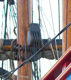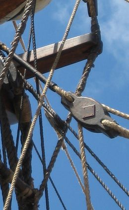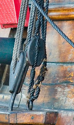 На блоках Мэри Роуз, строп охватывая блок роходит затем через отверстия в верхней части блока, в отличии от более поздних , овальных блоков, где строп охватывает блок целиком.