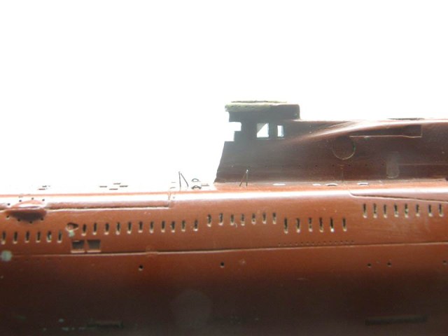 Я уже начинал работу над элементами АБУ (аварийным буксирным устройством), предназначенным для аварийной буксировки подводной лодки, на ОР (ограждении рубки) (ссылка пост 372). Теперь необходимо закончить этот элемент - АБУ. Тем более, что мне опять повезло и удалось достать фотографию подводной лодки Б-68 (прототипа) по состоянию на 1988 год, где этот элемент (АБУ) достаточно хорошо виден. Б-68 имела резиновое нерезанансное противогидролокационное покрытие с рупорными каналами корпуса типа НППРК-4ДЗ.