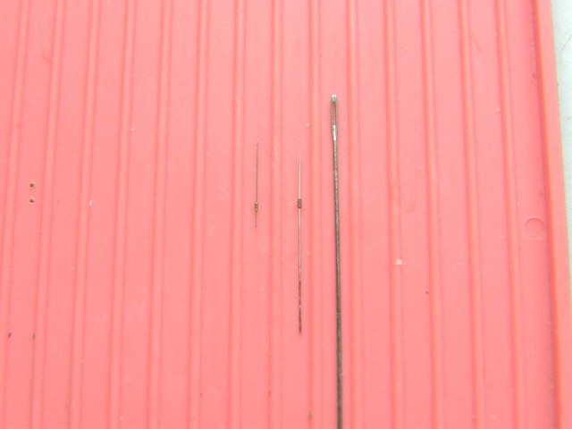 Латунных трубочек диам. 0,25мм и 0,15мм у меня нету (есть только 0,3мм), но для изоляторов на своём такелаже я использовал иглы от инсулиновых шприцов (тоже - 0,3мм). Нормально так подошли....