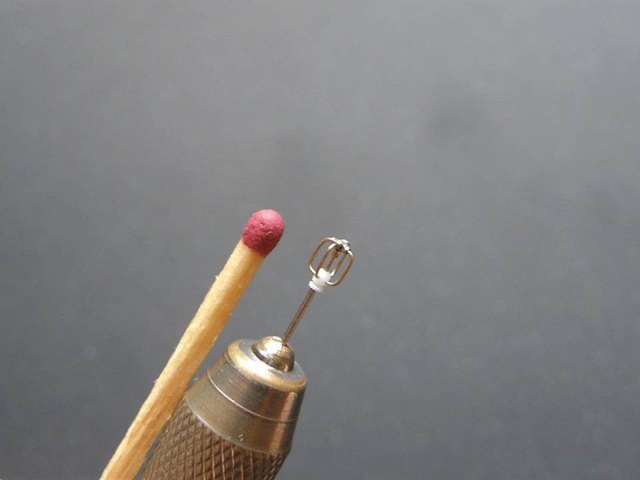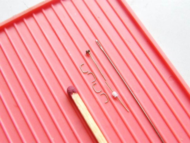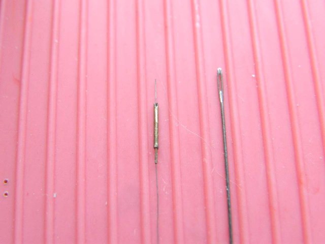 На бормашинке наждачной шкуркой зернистостью 800 сточил нижний край головной части перископа для установки ее в мачту перископа, сделанную из медицинской иглы Ø0,6 мм с внутренним диаметром 0,35 мм. Для установки верхнюю часть мачты из медицинской иглы высверлил сверлом Ø0,45 мм.