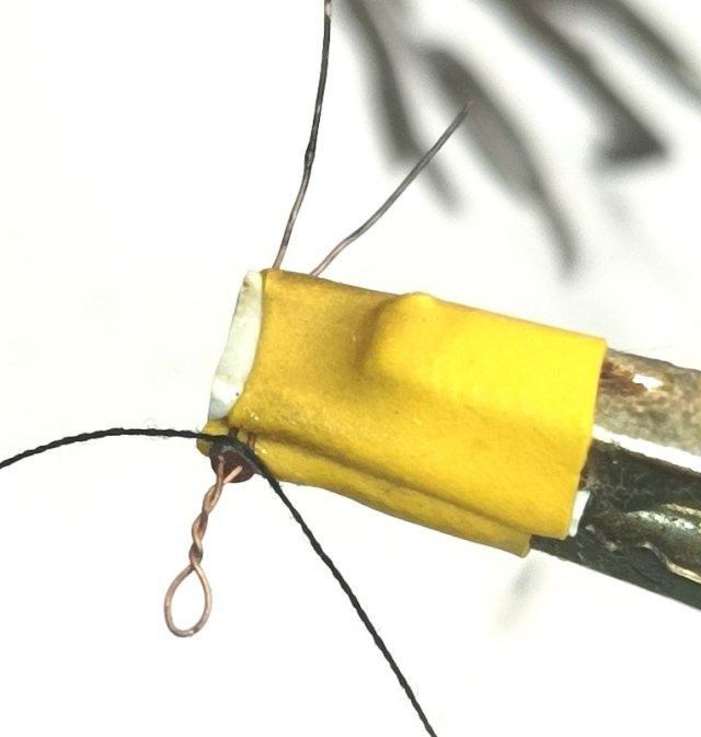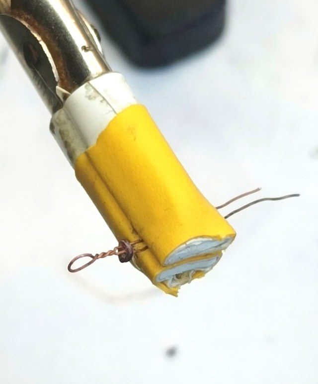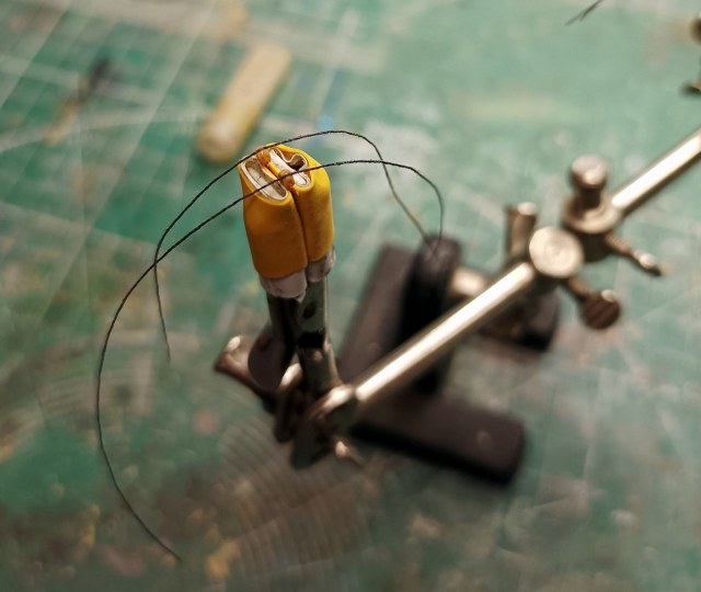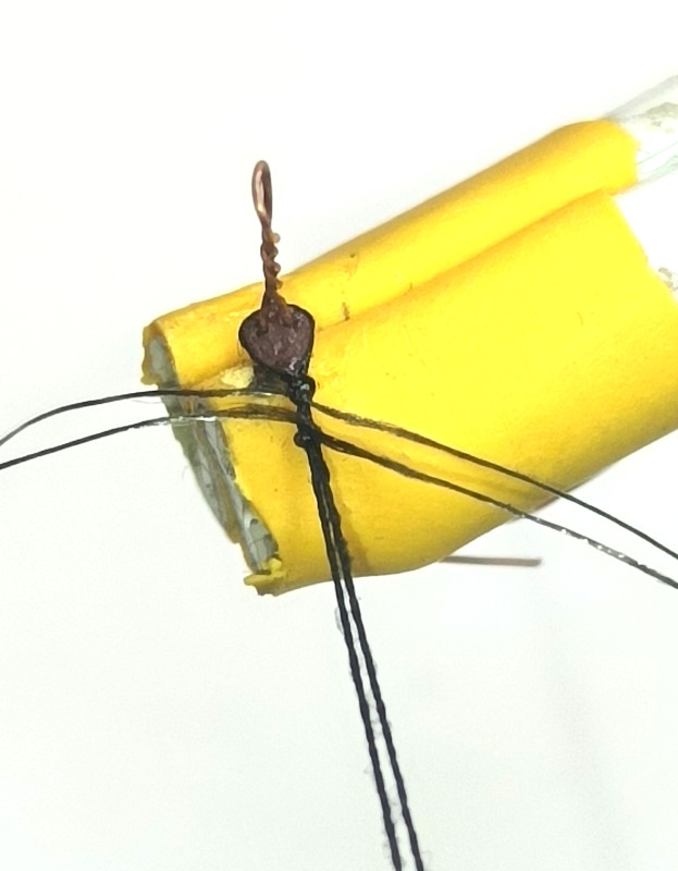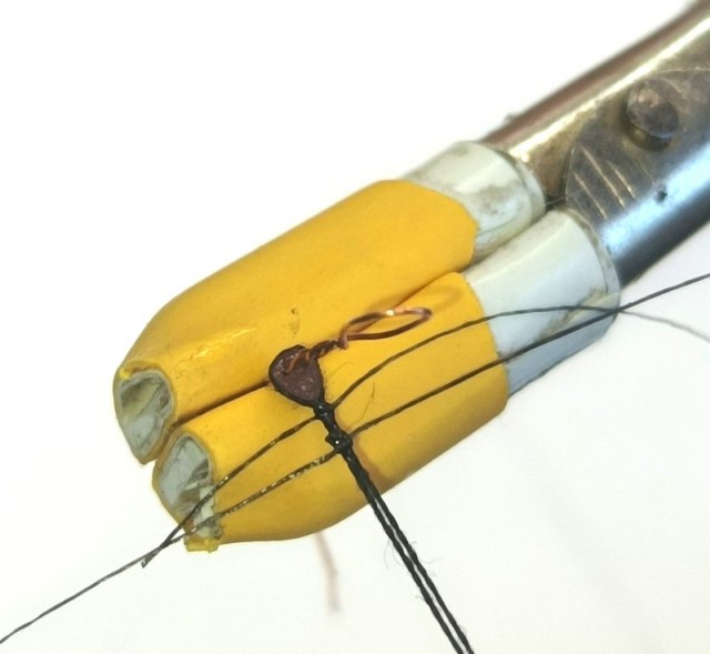 Вот такое технологическое приспособление из медной жилки 0,25 мм, чтобы держать юферс