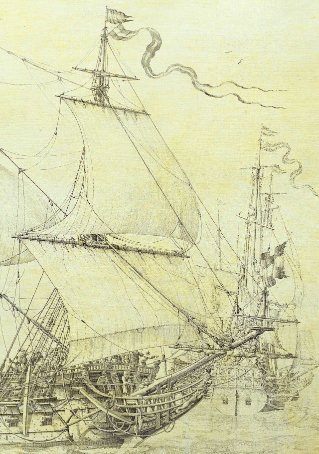 Я, например, показал часть изображения из книги по морским наукам за авторством великого Фурнье, лично плававшего на "Ля Курон" в тридцатые годы. На изображении корабля, хорошо заметно, есть указания на названия снастей такелажа. Учёный знал, что изображал.