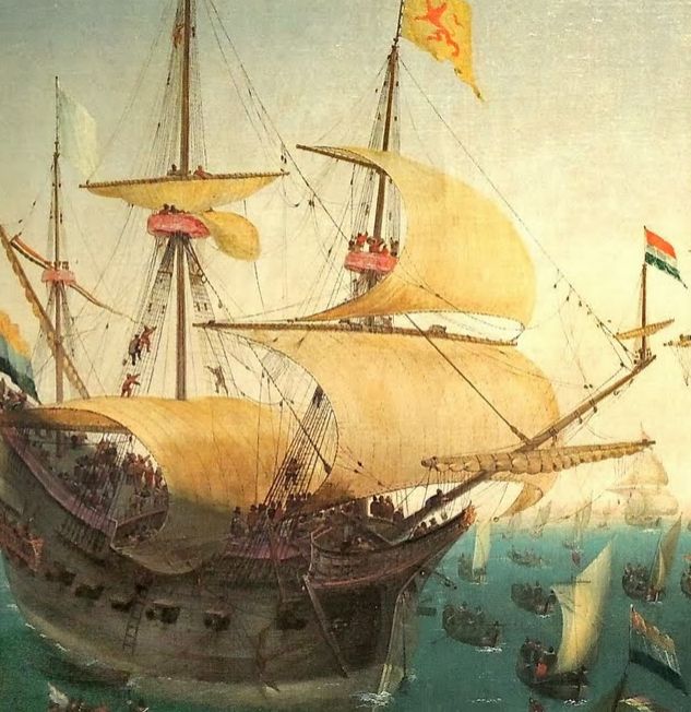 Но начинать надо со стоячего такелажа. Одним из стопроцентных интересных моментов будет тот факт, что в данный период штаги не имели мусингов. Огоны штагов были постоянные и не расплетались. И так было очень долго, до Васа и после Васа, так что практически на любой картинке с любым галеоном Вы это и без меня прекрасно увидите.