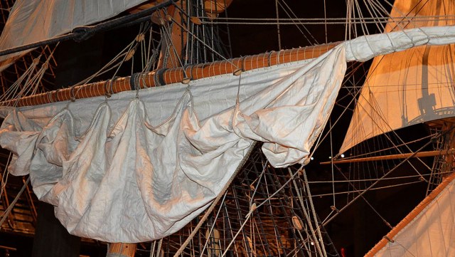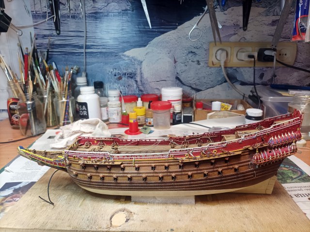 Стараюсь сделать такелаж максимально достоверно. Очень выручает качественный музейный чертеж модели в Стокгольме.