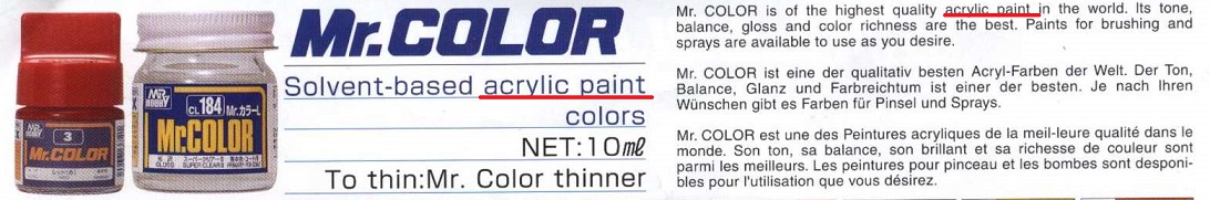 Есть акрилы водные, есть спиртовые. А есть, как Мистер колор, это акрил на базе так называемого сольвента... Что впрочем ничуть не делает его эмалью) И на уайт ему фиолетово. это уж точно! ))