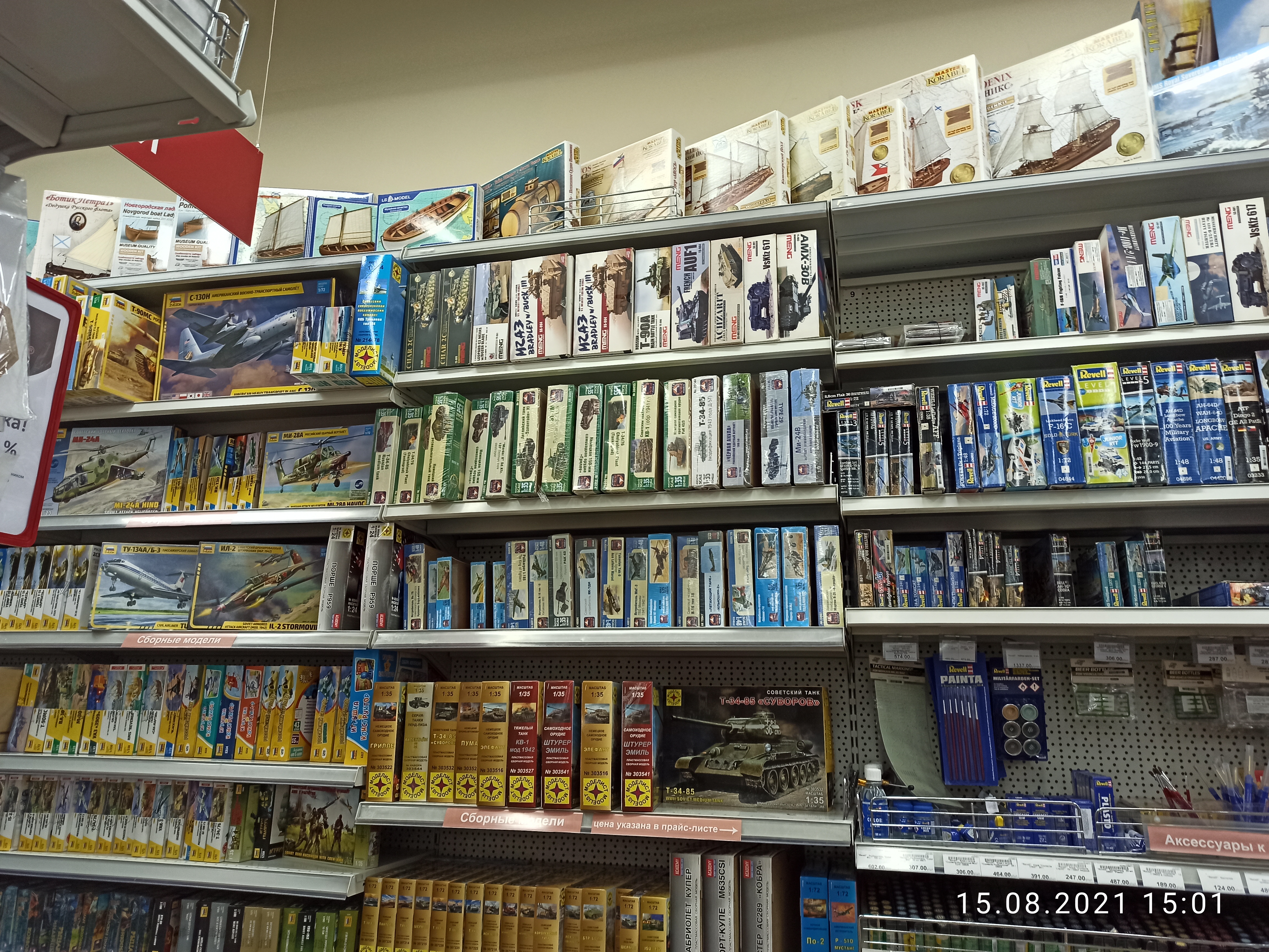 , миниатюры 1/72 и 1/35, БТТ 1/35 - почти вся Звезда, Трубач, Хобби Босс, ВЭ, Арк-моделс. Есть еще флот разных масштабов Звезда, АэрФИКС, ВЭ, Огонек. Порадовали цены и предложения на аэрографы и компрессоры ТNТ и ЗиП к ним. Жаль, что у меня всё уже есть для аэрографии. Вообщем всем рекомендую магазин. Плюс к этому сосед у него - магазин для художников. А там химии просто навалом, которой у моделиста маловато будет. У соседей я прикупил акриловый глянцевый лак и масляную краску для смывок.