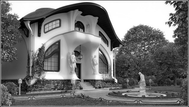 Красиво, но с черепицей что-то не так. Выглядит как кладка обтесанного камня.