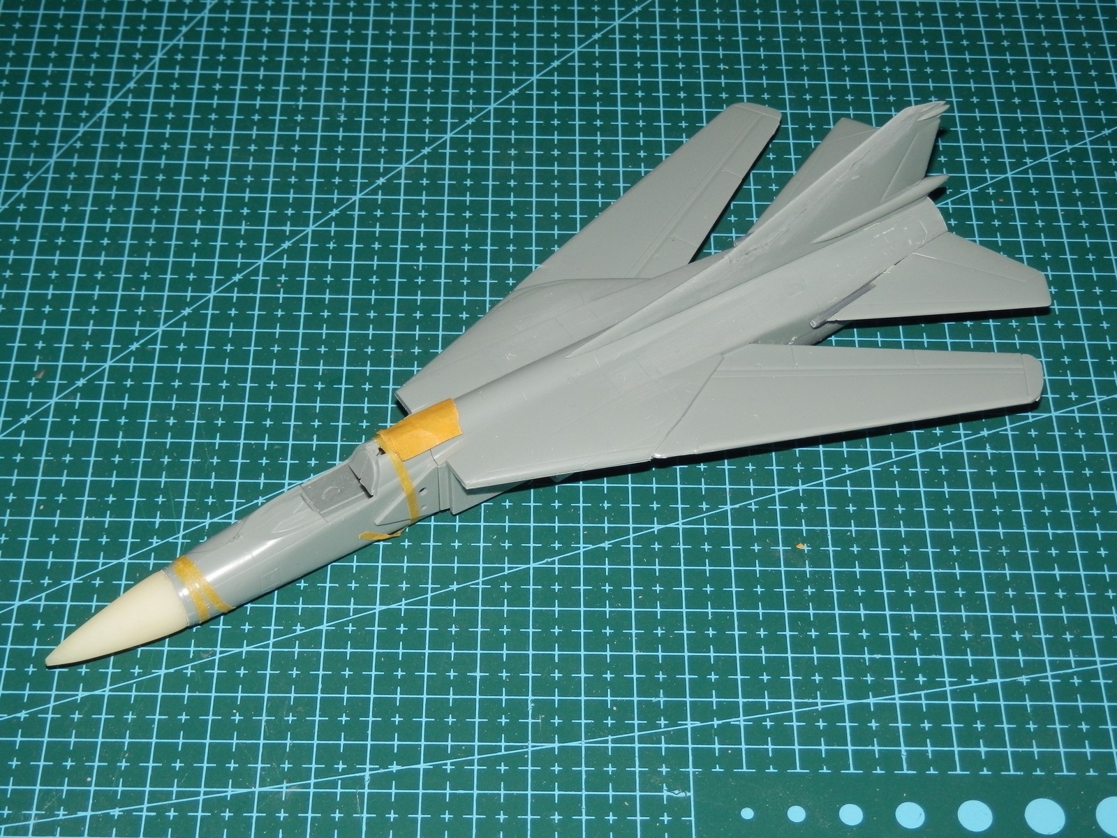 Ванна кокпита не черная должна быть, а темно-серая, я задувал "серой чайкой", имхо самое то получилось. Ну и + странные они ребята, переборку между кабинами либо глухую предлагают, либо печатную с "дыркой". Я под свои из прозрачной смолы сделал