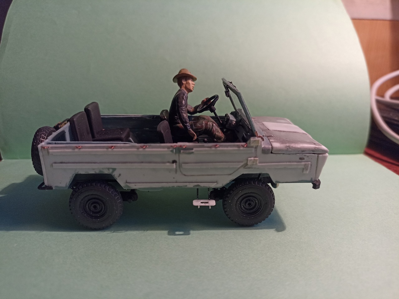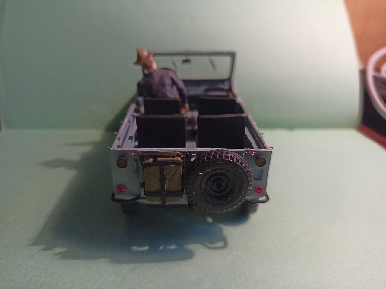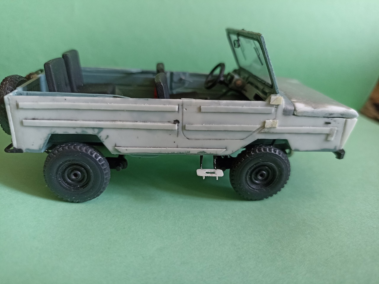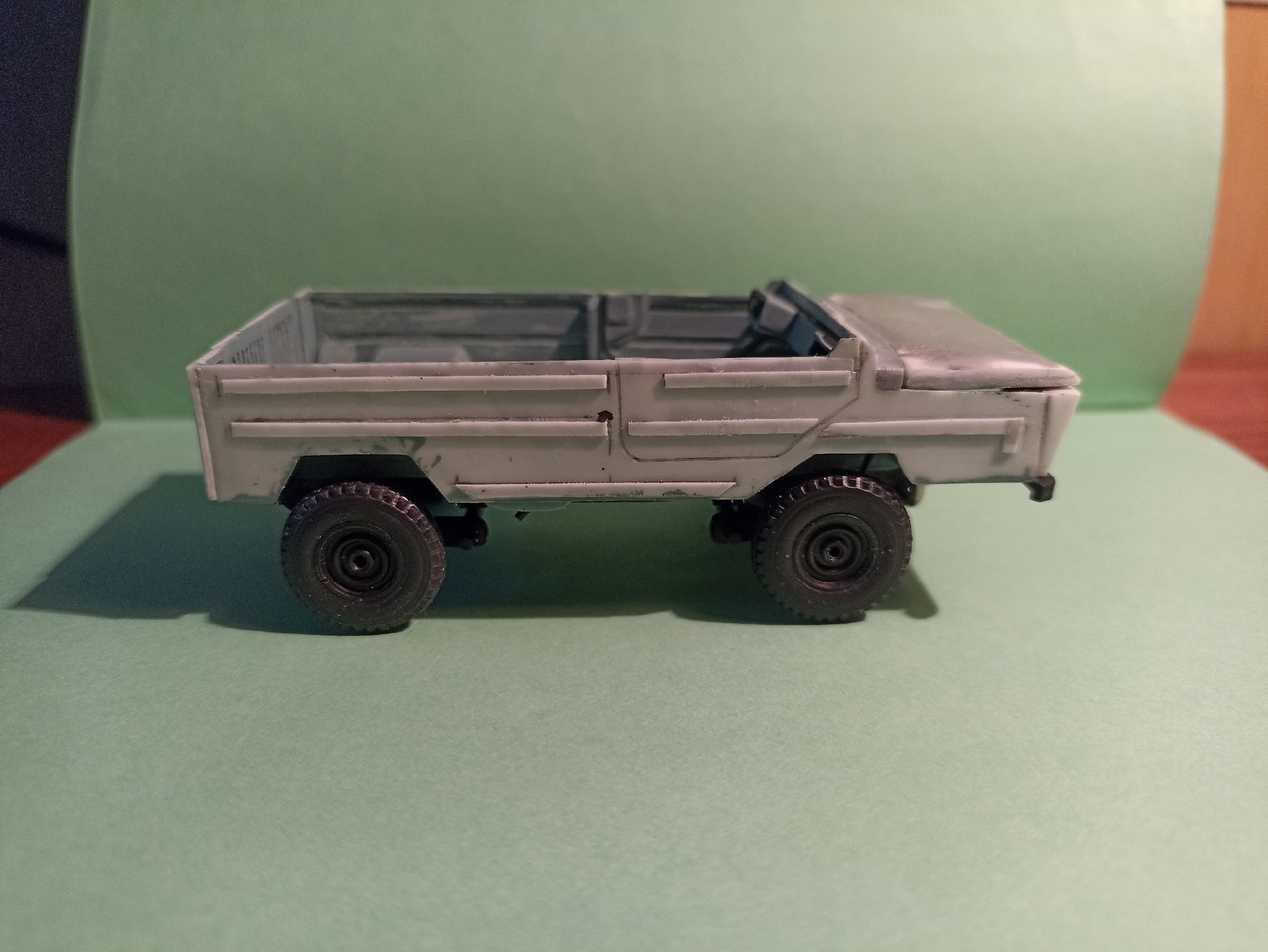 После покраски приклею зеркала заднего вида, номера, лопату на борт и вещи в кузов - винтовка, рюкзак, ведро, ящик, и, возможно, скатка.