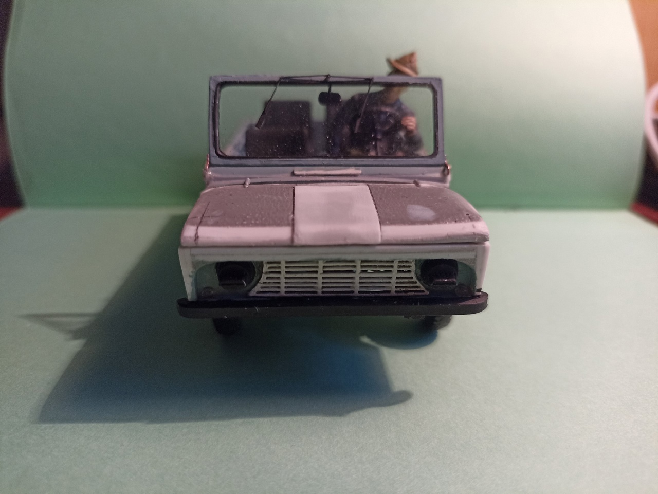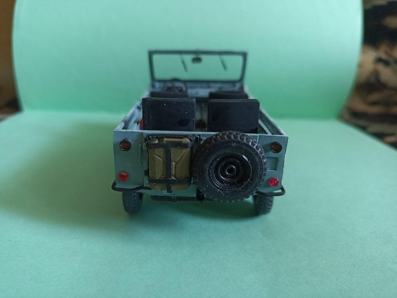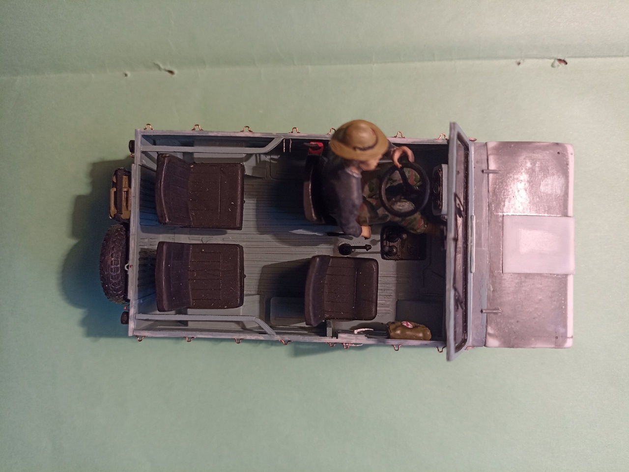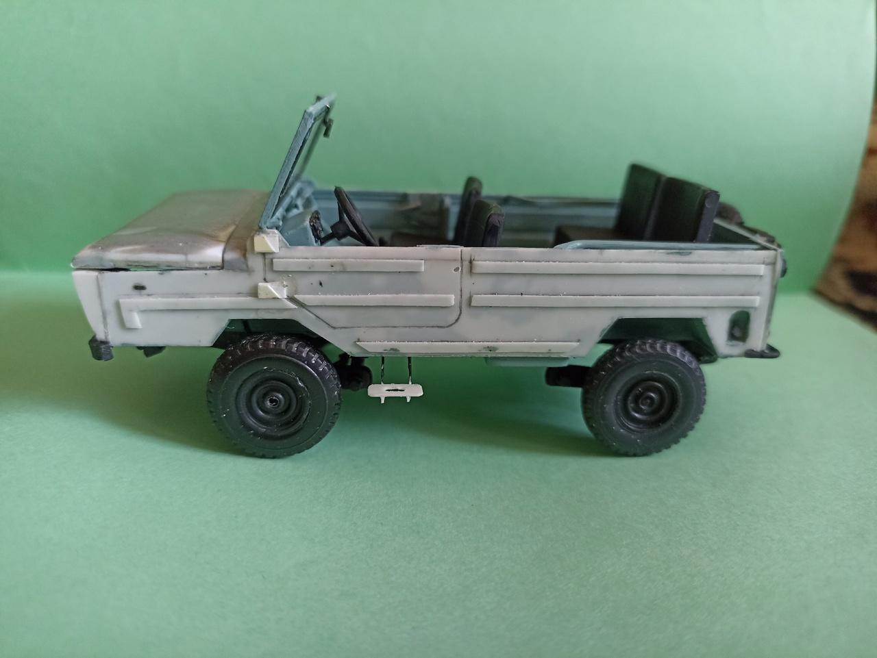 После покраски приклею зеркала заднего вида, номера, лопату на борт и вещи в кузов - винтовка, рюкзак, ведро, ящик, и, возможно, скатка.