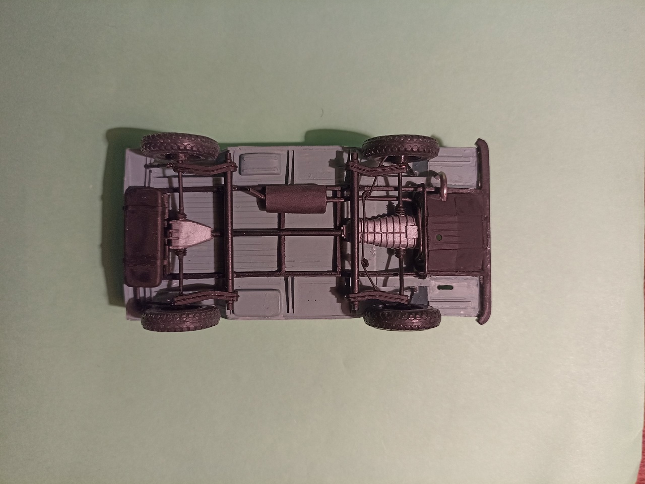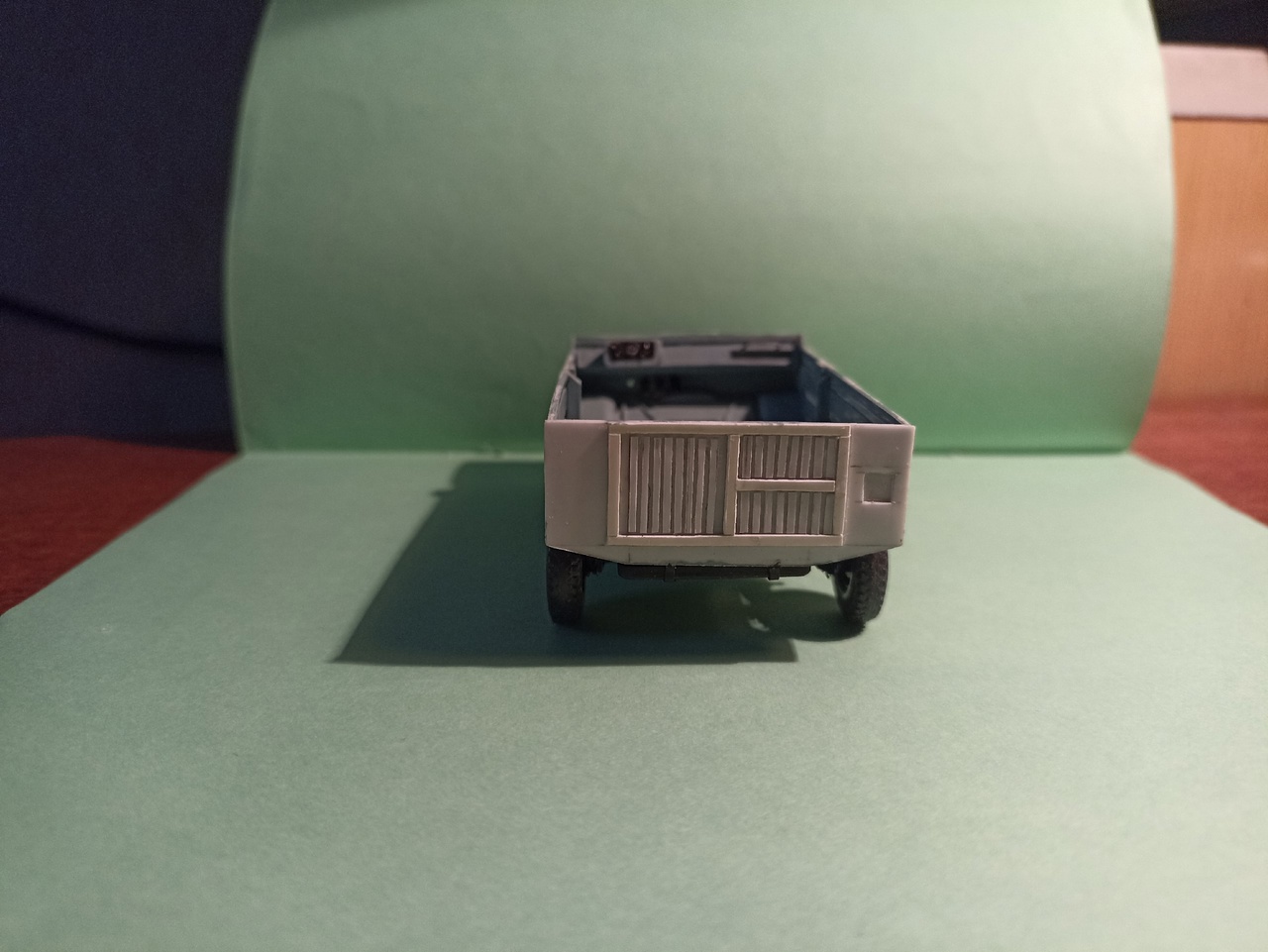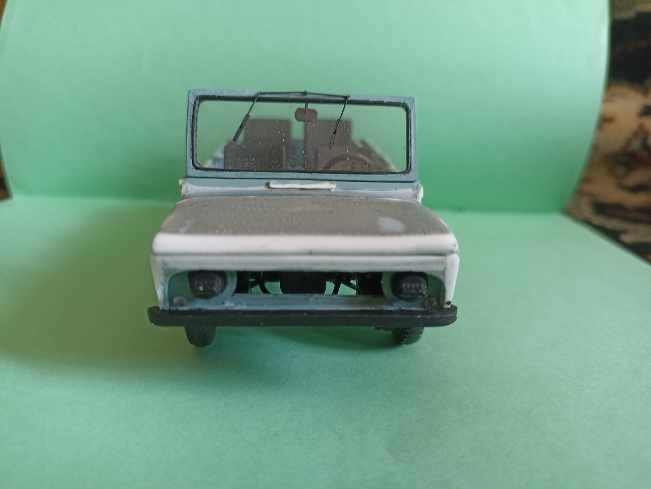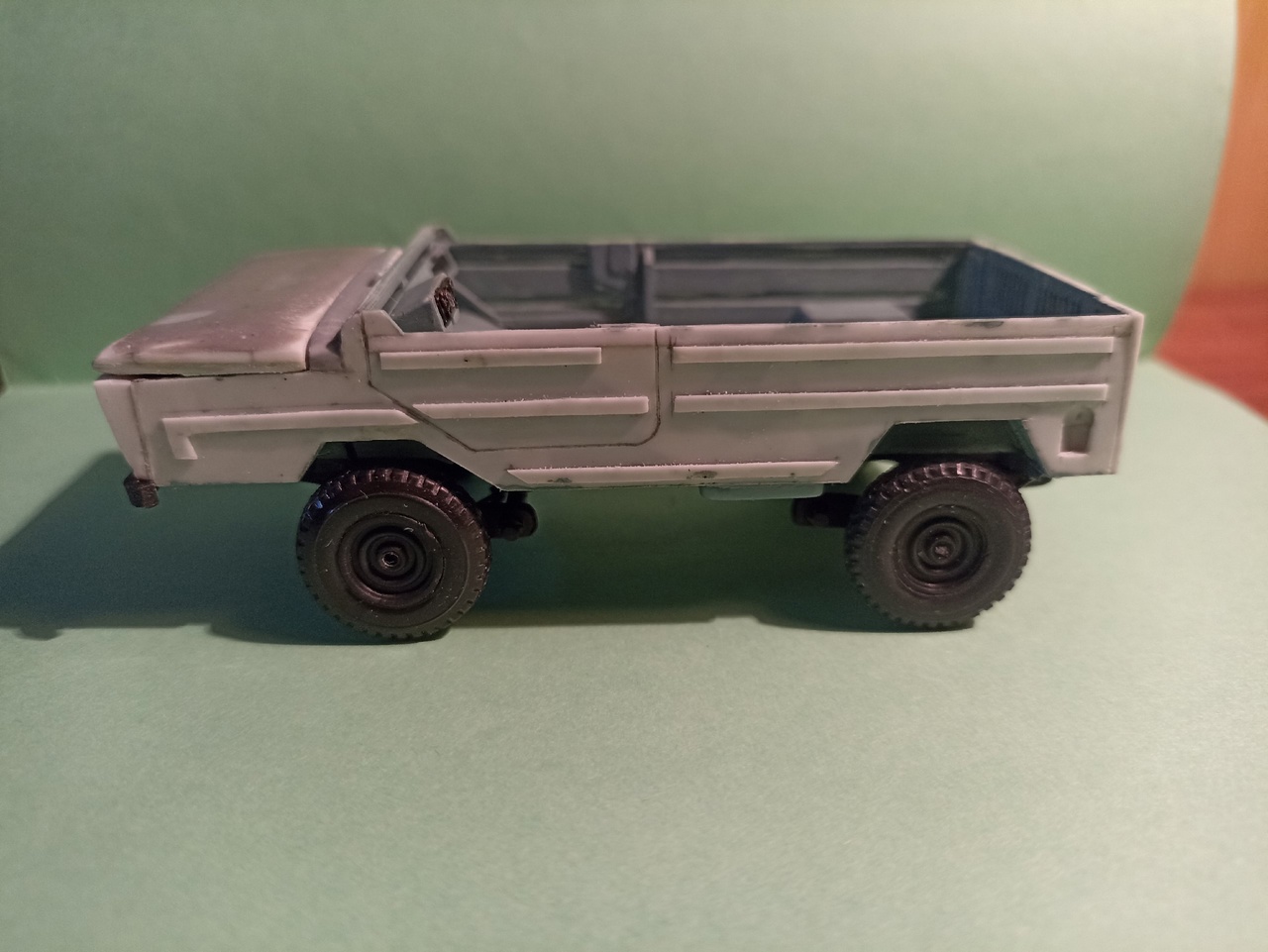 После покраски приклею зеркала заднего вида, номера, лопату на борт и вещи в кузов - винтовка, рюкзак, ведро, ящик, и, возможно, скатка.