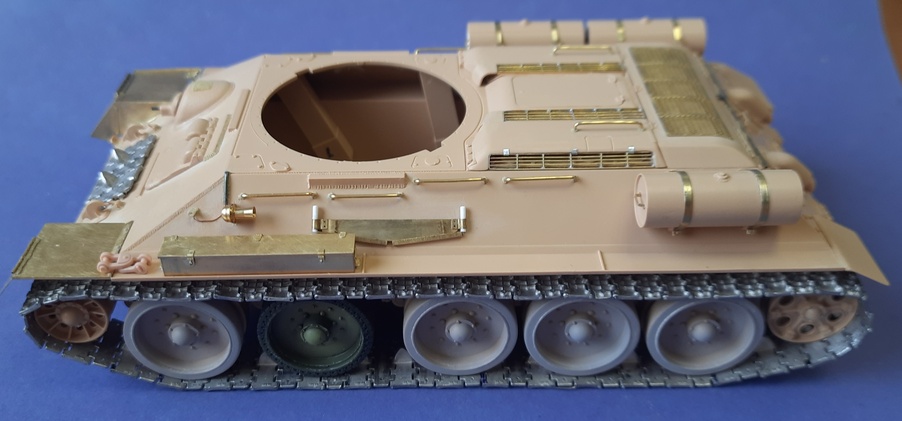Да, прошу обратить внимание на решётку - она собрана из двух решёток от Т-34. Не идеально, но в общем и целом результатом я доволен