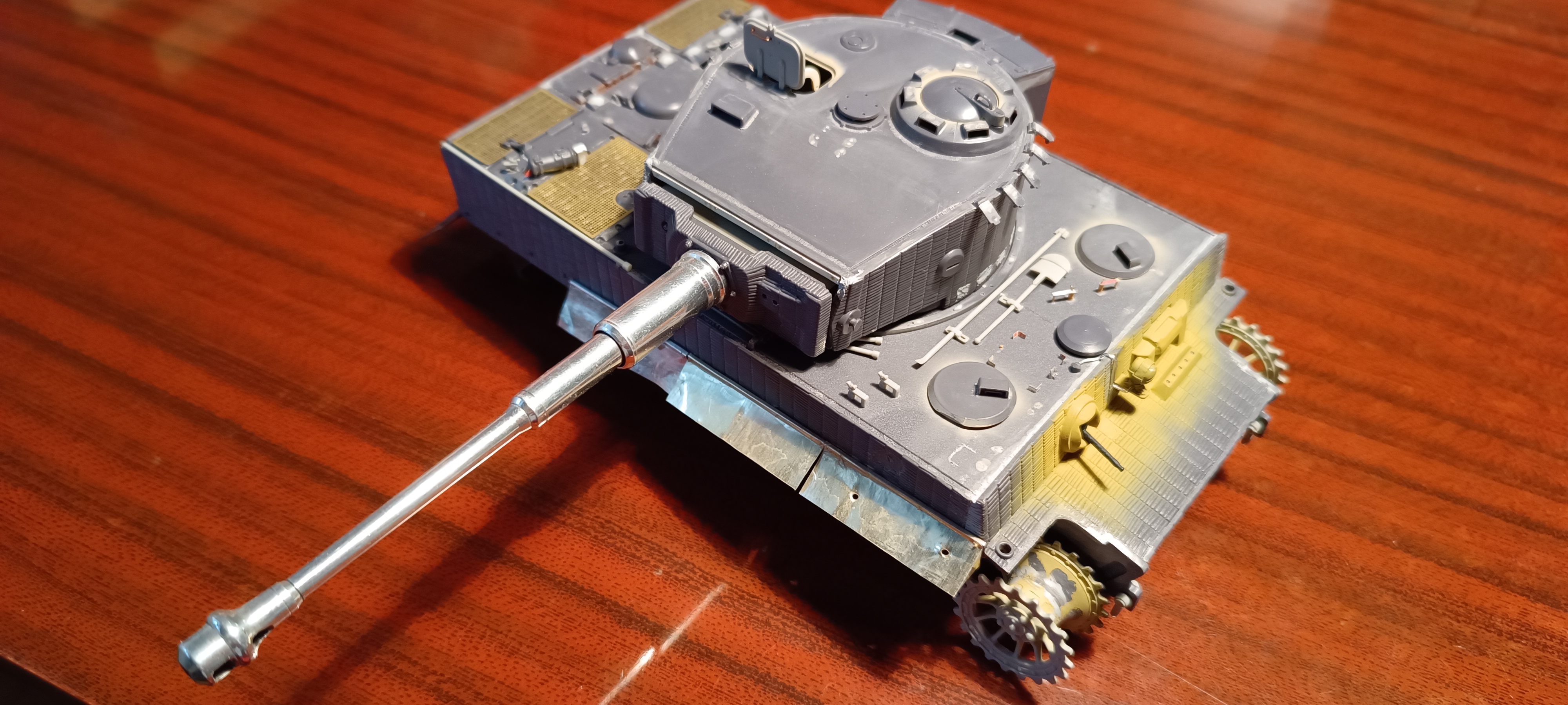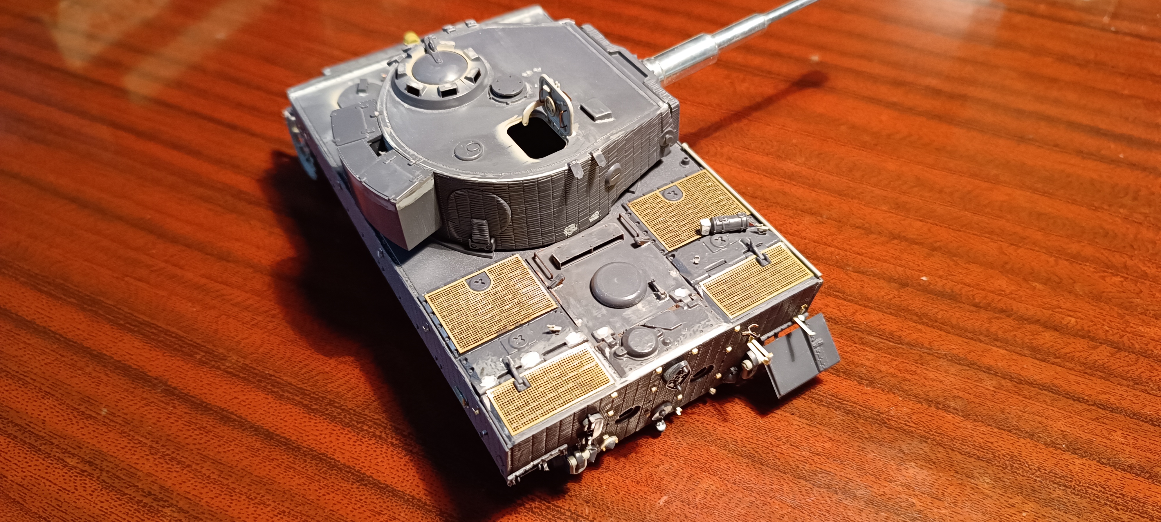 Да уж.. у самого 141 лежит тоже руки не доходят.. Но у тебя видно что плохо впечатанны деки в модель. С низу пожелтела дека, и серебрение и изнутри RA. Вариант самый простой -берешь сухую кисть с фоновым цветом и прям по деке сверху аккуратно.