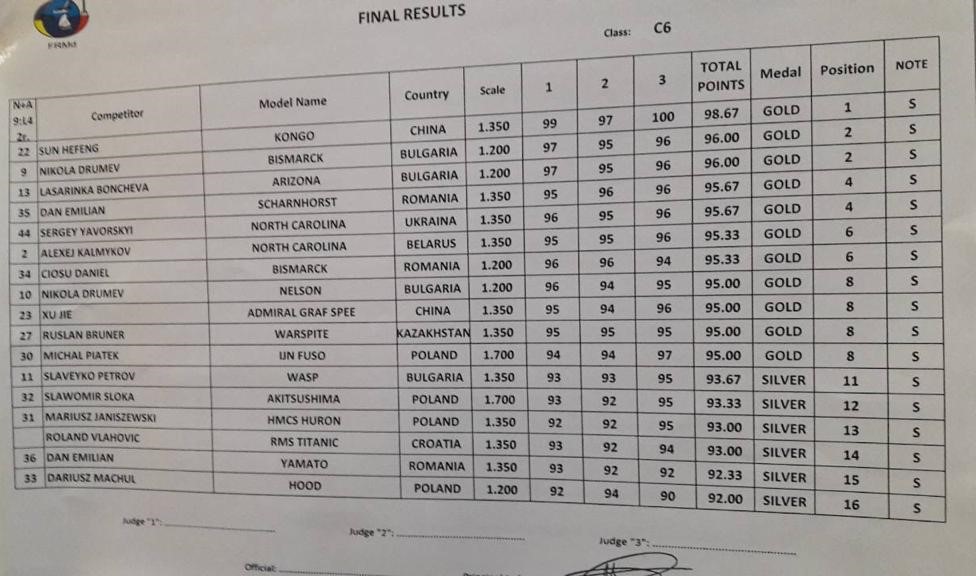 Но по итогам выбирают модель, набравшую максимальный балл на Чемпионате - ей и автору присваивается звание "Чемпиона Мира/Европы"