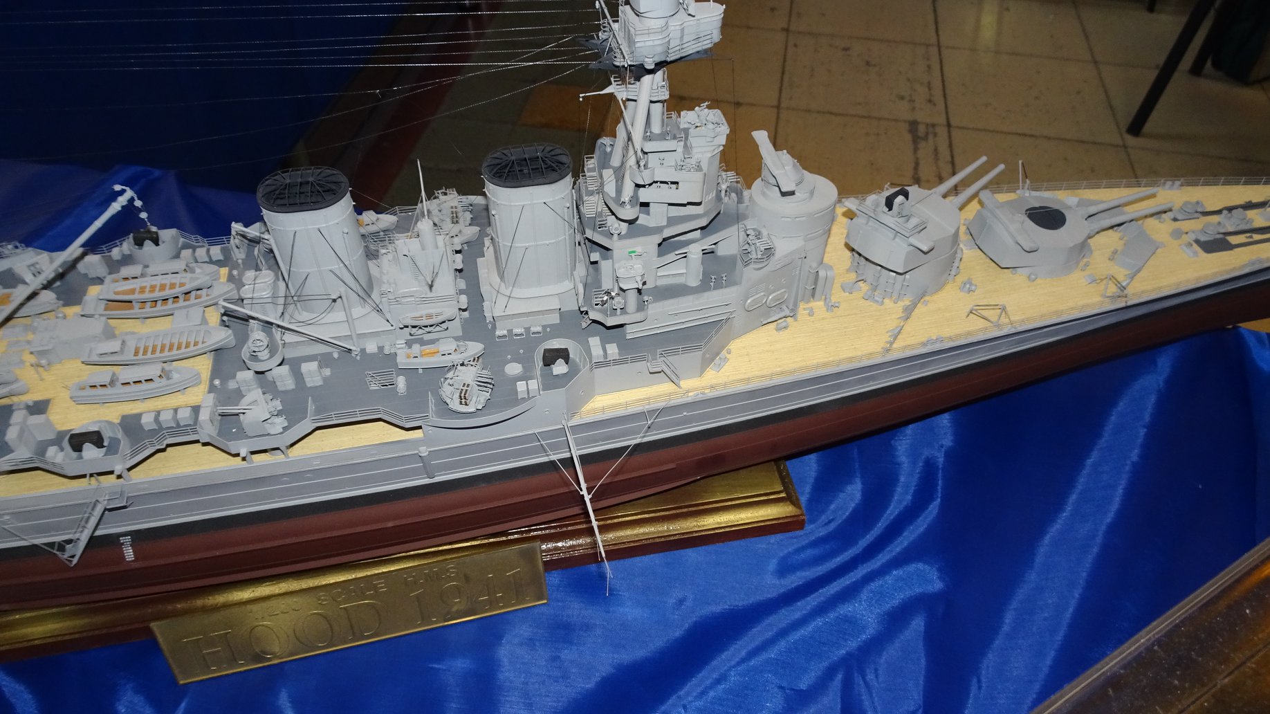 Ну как можно поставить шесты противоминных сетей наоборот относительно оригинала? Ведь есть фотографии, даже в свободном доступе. А куда делся переходный мостик от второй дымовой трубы на кормовой? Пароотводящие трубки на второй дымовой трубе по-моему просто не доделаны. Крамболы стоят совсем не там где должны? Все плавсредства стоят по походному, однако нет найтов вообще, и при этом их явно не хватает по количеству, где, например, спрятались ялы? А где еще 2/3 такелажа? И т.д.