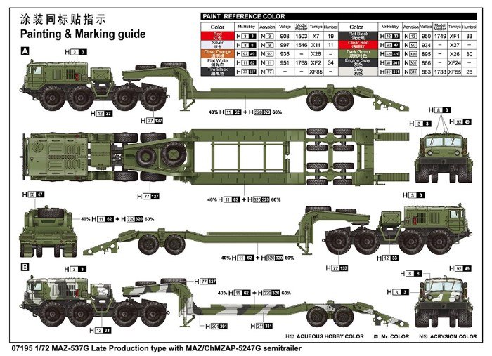 Также показали состав набора модели МАЗ-537Г с прицепом ЧМЗАП-5247Г в 1/72.