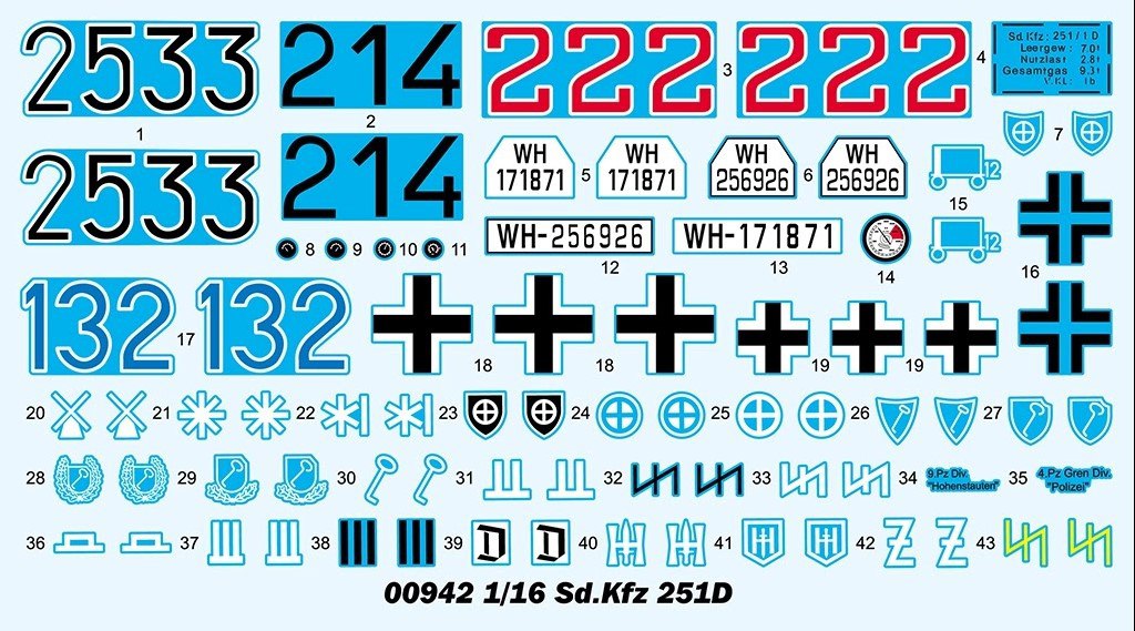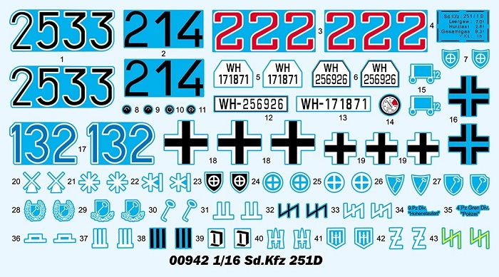 Содержимое набора Sd.kfz.251 Half-track D-type. Масштаб 1/16