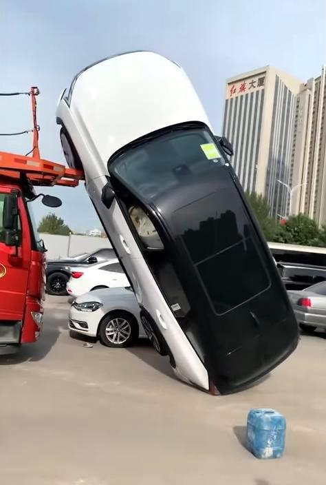 С автовоза упала.