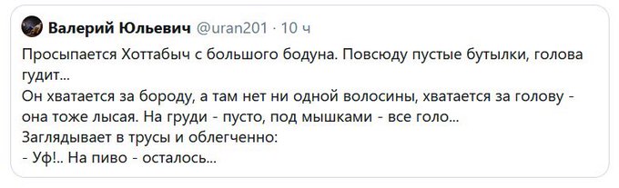 Прапорщик просыпается в обед с жесткого бодуна, голова раскалывается, во рту кака. Вдруг звонок на телефон. Он: