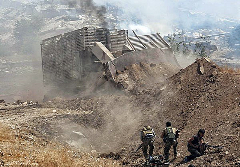 Этакое хтоничное чудовище и два маленких человечка против него/или вместе с ним. Смущает наличие Т-72Б на заднем фоне. Откуда он в Секторе Газа? С учетом того, что САА активно заниматься шушостроением, допускаю что на фото всё-же Сирия.
