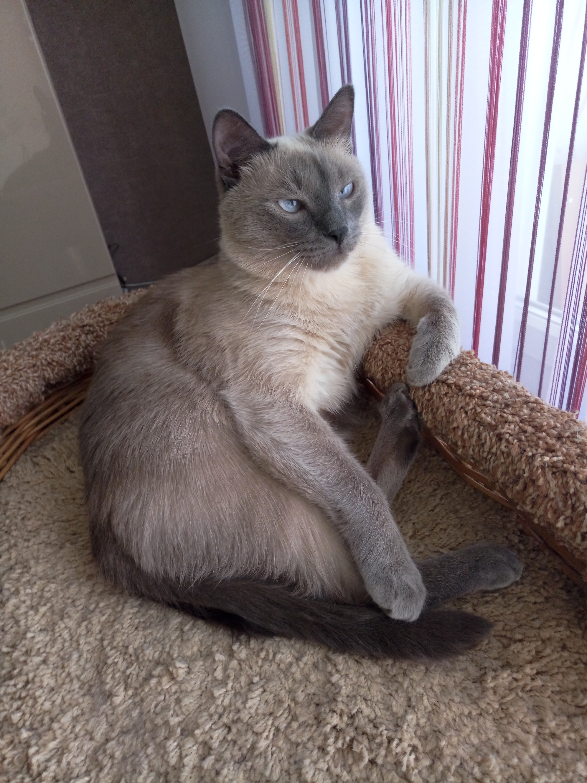 Мой старый кот, которого я притащил домой измазанным битумом и с поломанным хвостом котенком, видимо до конца своих дней был мне благодарен... Но полтора года назад мой Боня отправился на радугу и друзья(выдержав паузу), подарили мне ПОРОДУ! Невская маскарадная сволочь! Красивый, смышленный, но... Очень интересуется моделизмом.