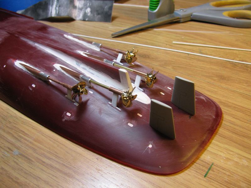 Отверстие тож кажется клюз. Круглый. На счет решеток пошукаю, мож и накопаю в своих закромах. Рули либо доделывай либ меняй- непохожи (нет наплывов на днище). На носу, в центре над клюзом, ближе к ПП люк имеется, хотяб расшивкой обозначь.