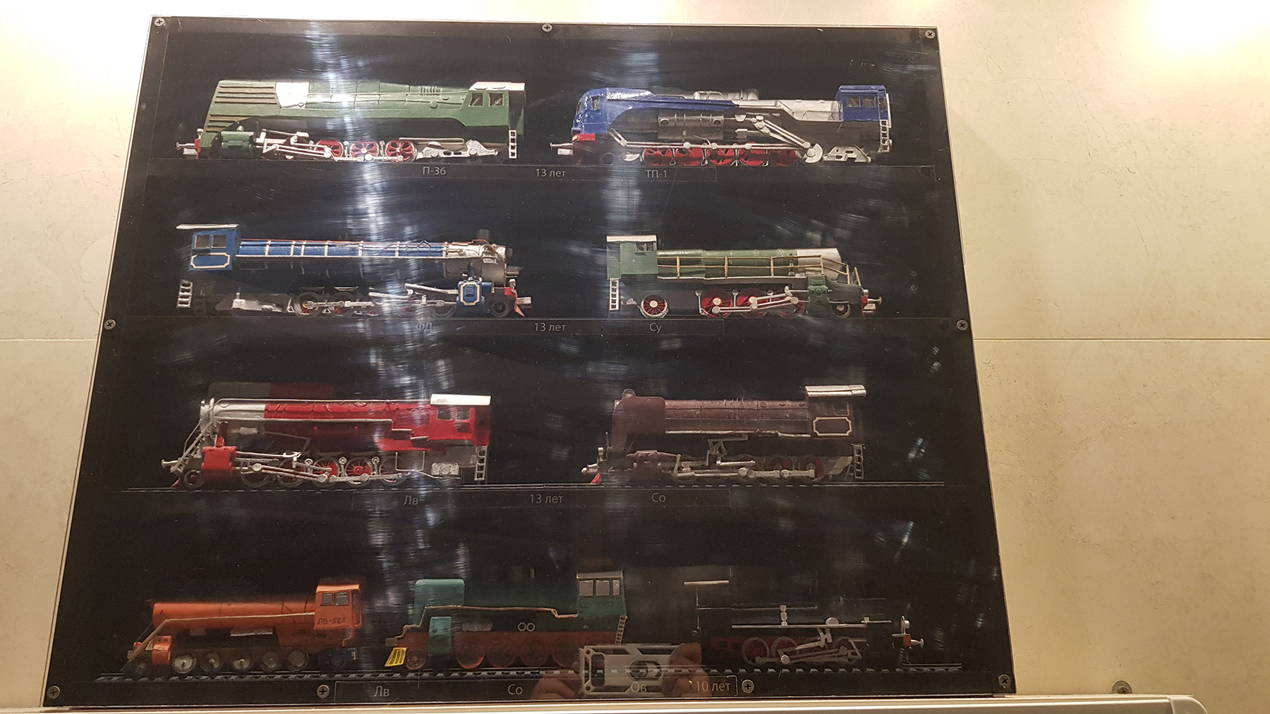 А в отдельном шкафчике экспонируются модели паровозов, которые я делал по журналу Техника Молодежи в том масштабе, как там было изображено