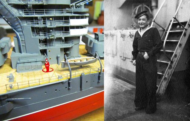 Попытались воспользоваться вашей моделью для определения места на палубе, в котором сделан снимок. Это удалось не сразу. Дело в том, что трап за спиной молодого моряка расположен не так, как в вашей модели линкора "Октябрьская революция". Но так, как вы изобразили в моделях других линкоров этого типа, и даже - черноморских. То есть, поперек настила палубы.