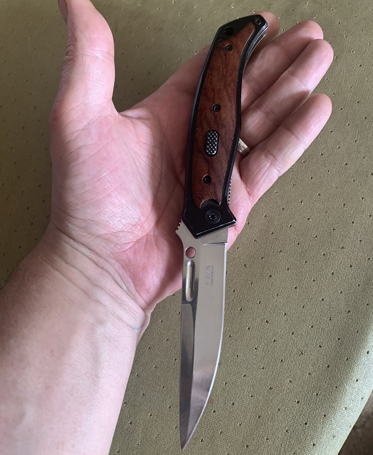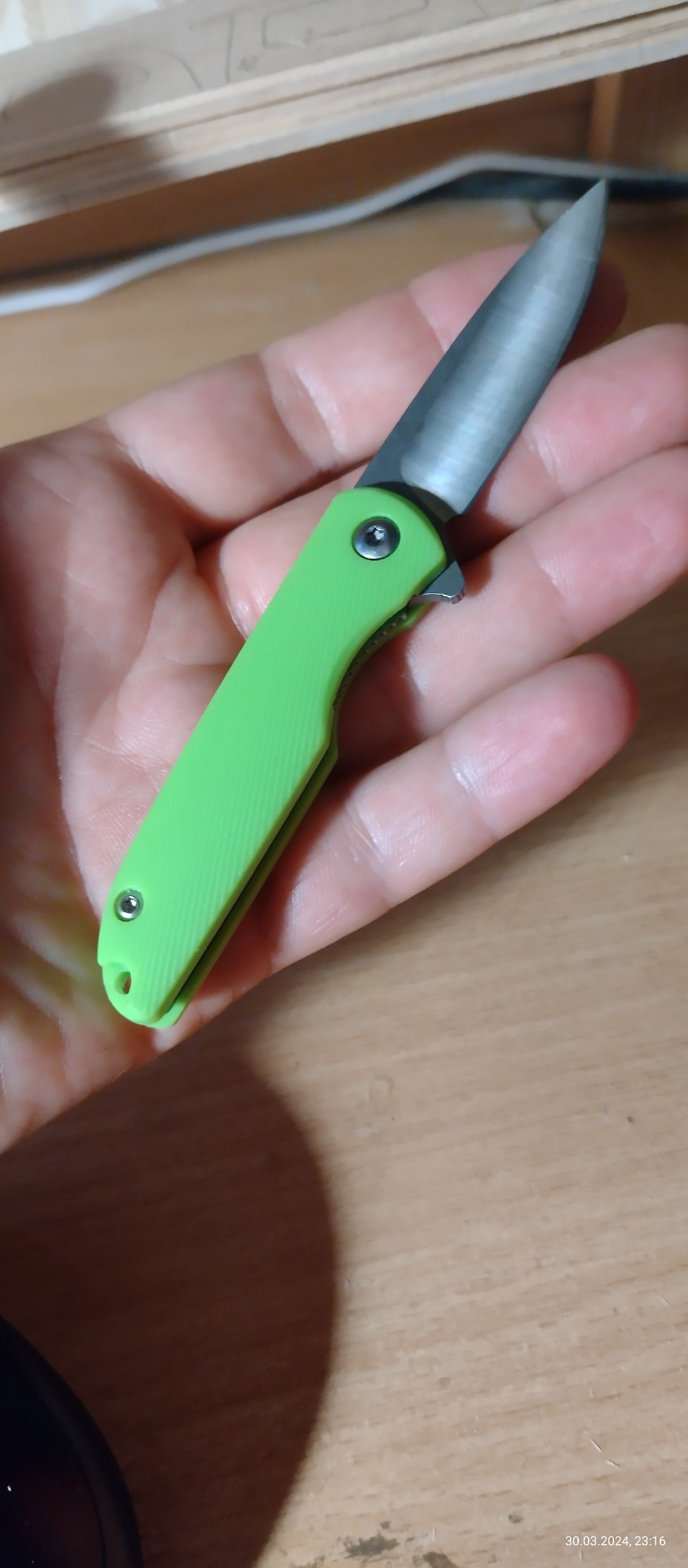 Вообщем и целом нож не плохой, ручка довольно объемная, за счет этого приятно лежит в руке, но есть недостаток о виде самопроизвольного открытия в кармане, не всегда конечно но такой грешок за ним водится.