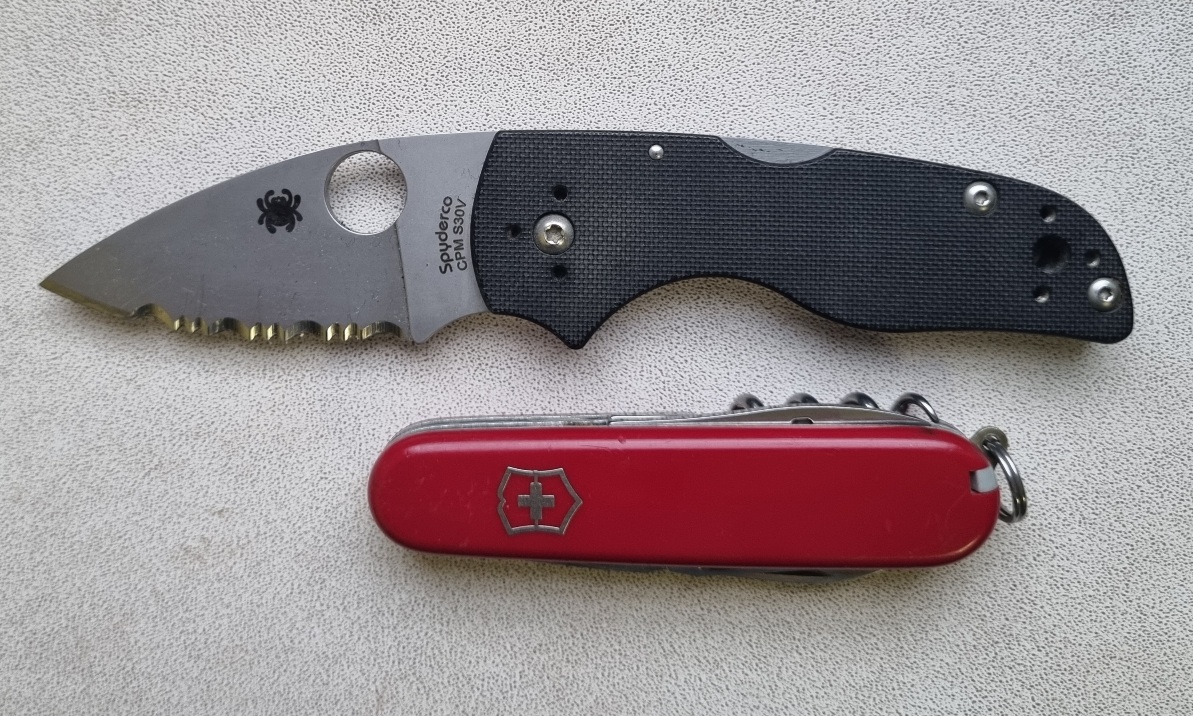 Я собой ношу перочинник. Хватает на все случае жизни. А больше мне и не надо, т.к. 90% случаев когда он нужен, это вскрытие различной упаковки, отрезание скотча, когда наоборот упаковать надо, крышку на банке поддеть, спину почесать, куда локтем не достаешь и т.п. бытовуха.