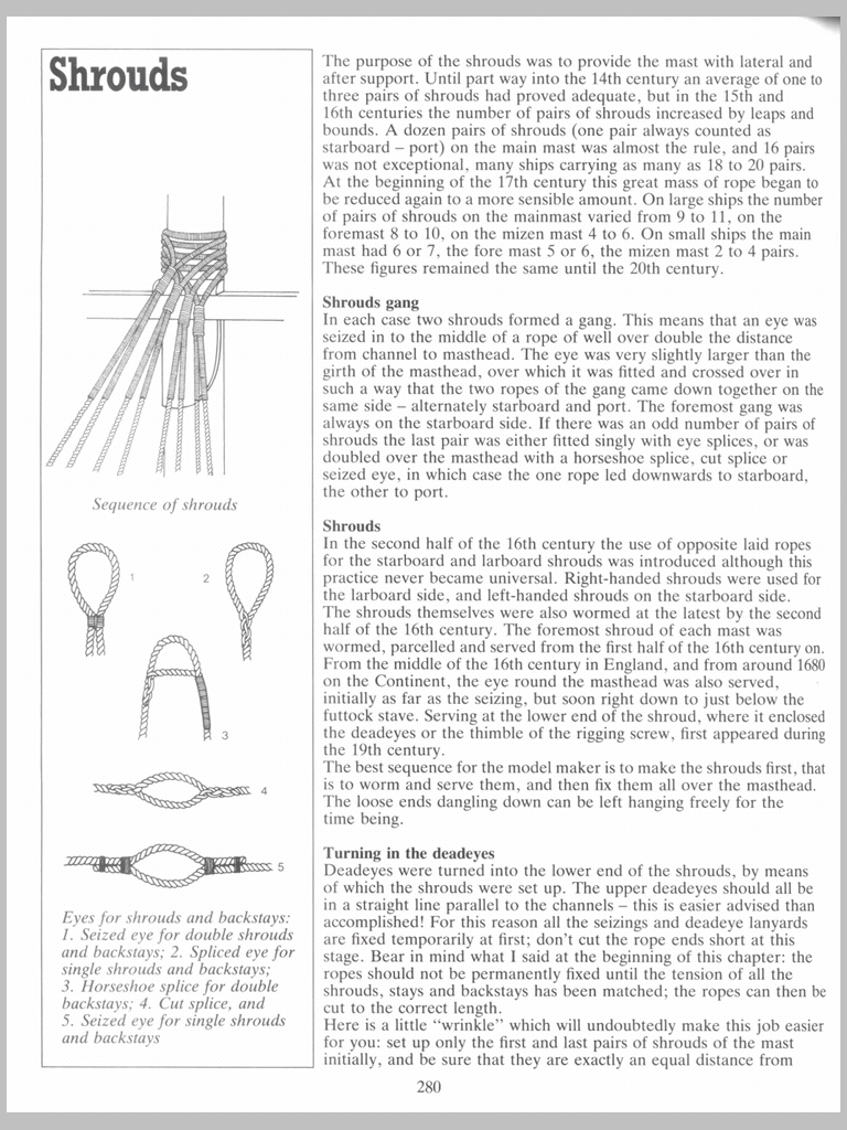 клетневку огонов штагов и вант не делал намерено - ещё вроде как не "время", судя по букварям... а вот по каким  ...енто надо посмотреть ещё...сразу навскидку не вспомню сейчас, но не стал делать специально... скорее всего у Андерсона в соотв. разделе...имитировал клетнёвку только первых вант ...