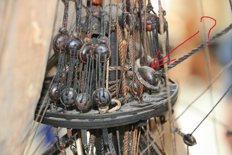да...похоже на то ... оказывается последний раз модель и такелаж(такелаж частично,блоки и паруса оригинальные) реставрировались в 70х годах ХХ го века Ketting' ом ,автором известной книги по Prince Willem, который ещё и сделал модель по модели... так что наверное сейчас трудно сказать, ошибка ли это реставраторов или изначально так было ....