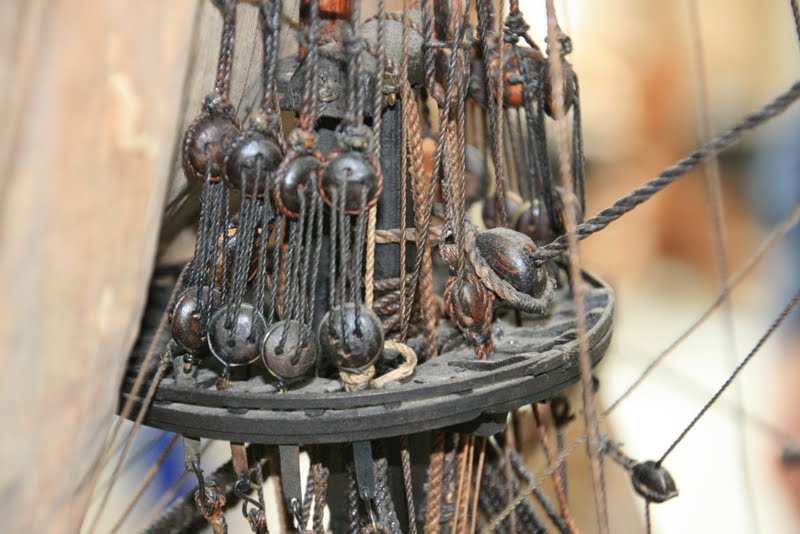 судя по состоянию, такелаж либо вообще не реставрировался ( и слава богу), либо реставрировался очень профессионально и в щадящем режиме...скорее консервировался