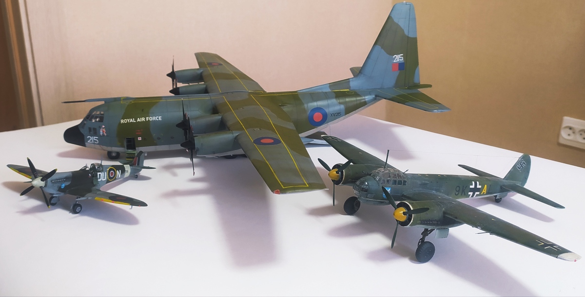Мои скромные итоги. Геркулес и Юнкерс строил параллельно. Но С-130 К добил только сейчас. Спит девятка от Eduard лежала в коробке ещё с прошлого года. Собранная и окрашенная в базовые цвета. Решился и доделал совсем недавно.